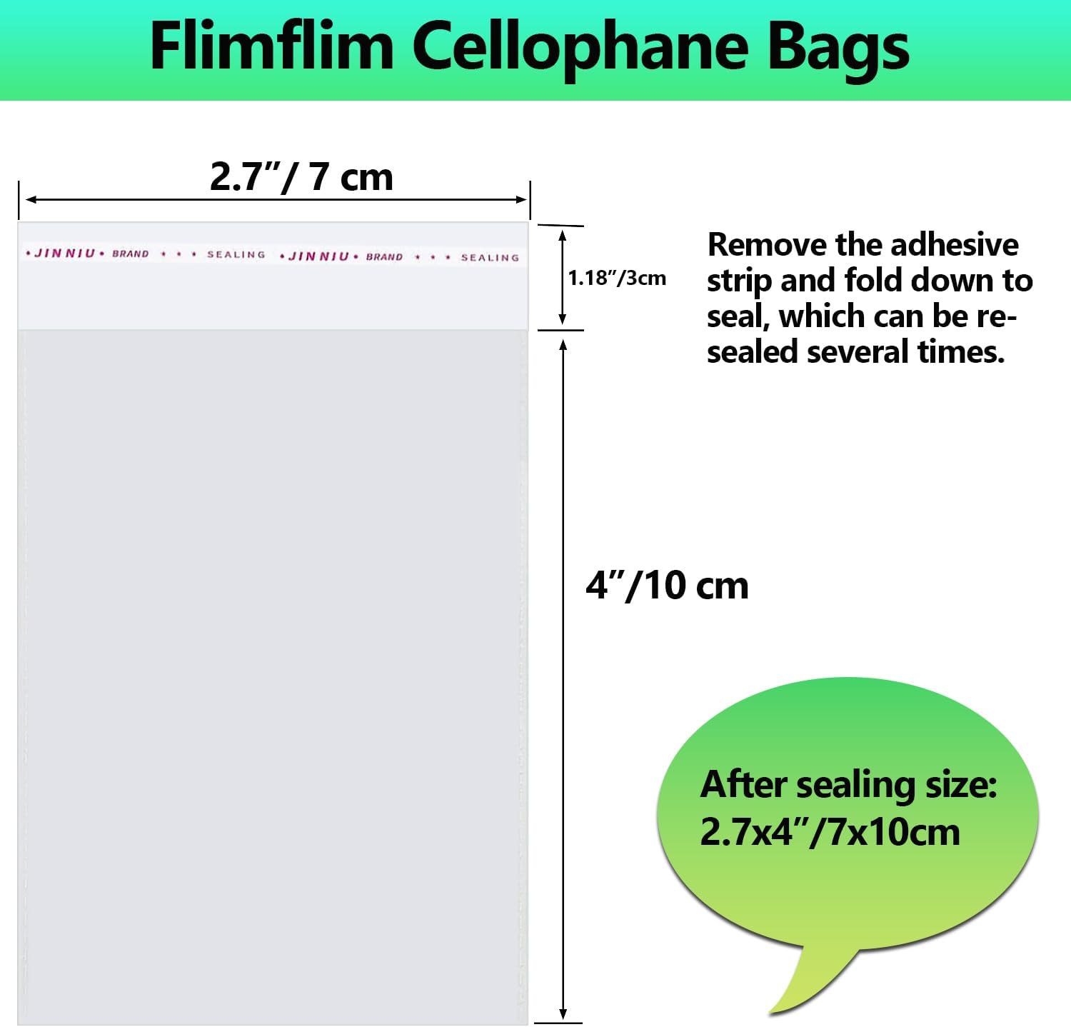Cellophane Bags Small, 2.7×4 inches, 100pcs, Transparent, Self Seal, Polypropylene, Multi-Purpose, Ideal for Packing, Gift Bags, Custom Size Available