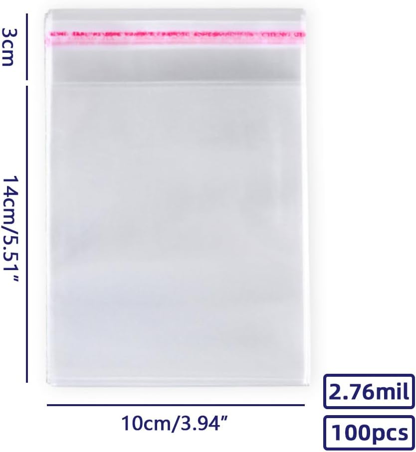 CZ 100pcs Self Sealing Cello Bags, 10x14cm Clear Resealable Self Adhesive Bags for Cookie Bakery Clothes Packaging