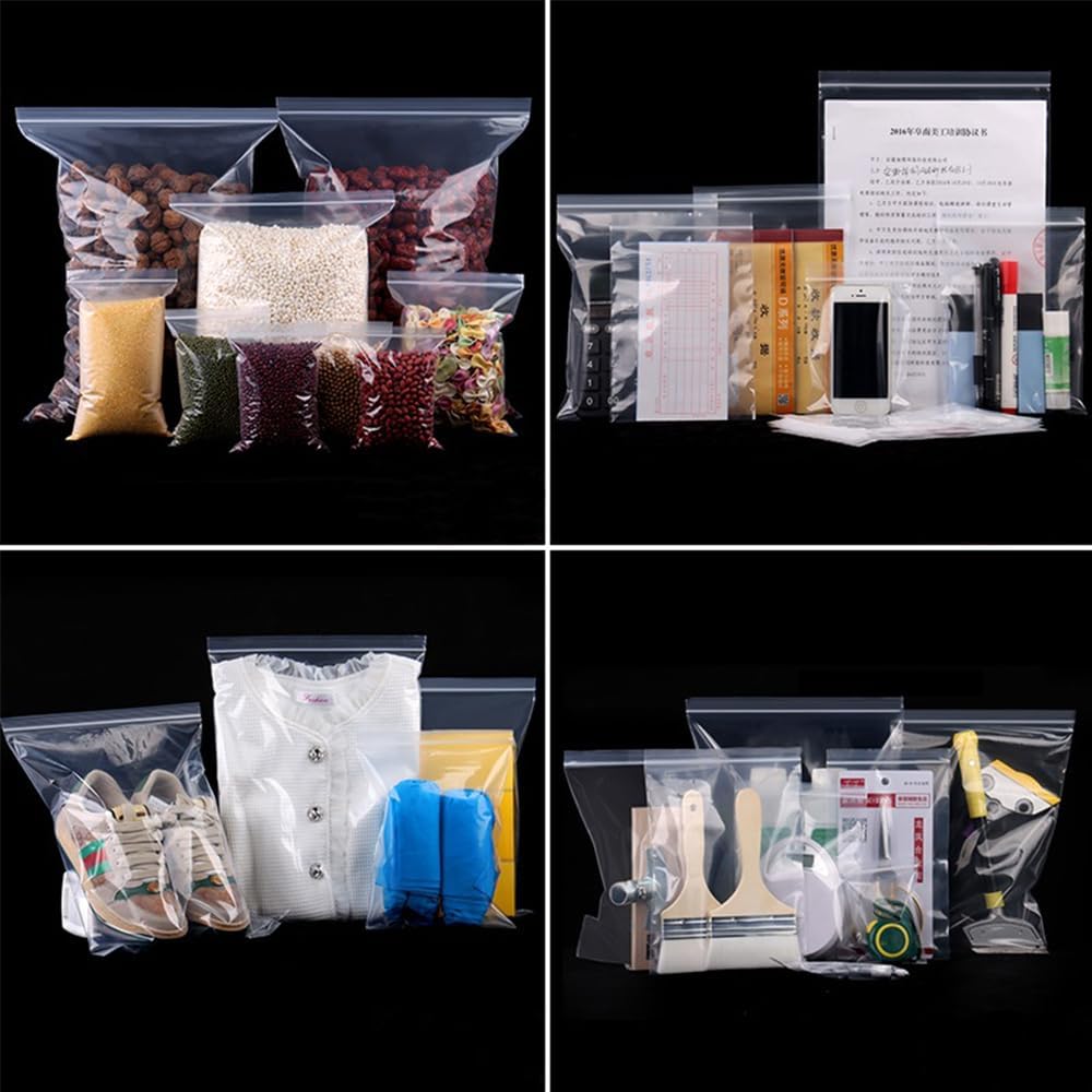 The Yooyeh Extra Large Grip Seal Ziplock Bags are designed for versatile storage needs. Measuring 40x50cm, these resealable clear plastic pouches are perfect for various items, including jewellery, diamond painting supplies, and large cookies or sweets. Made from durable materials, these bags ensure your items are protected while remaining visible.