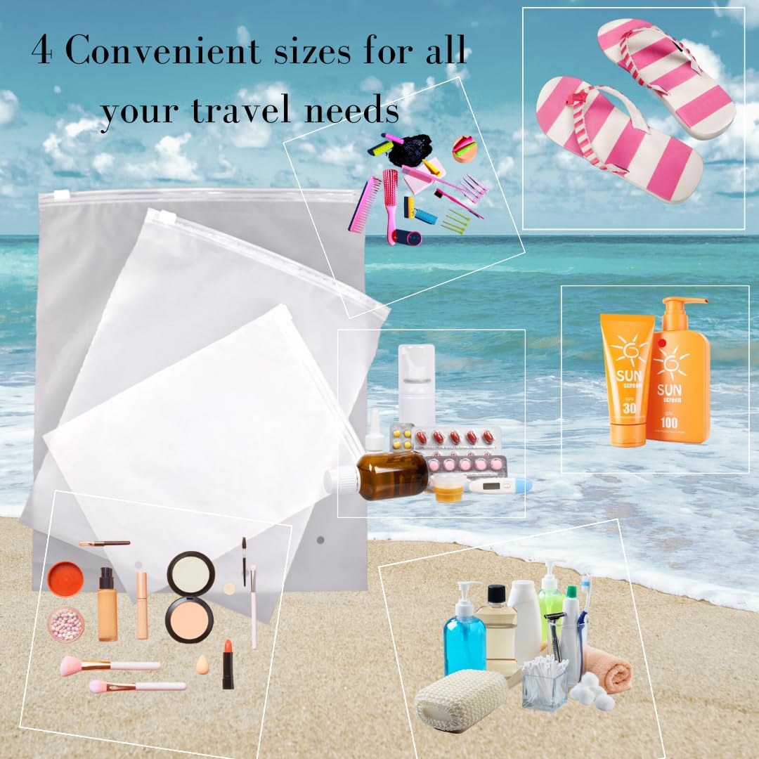 Introducing our Frosted Zip Lock Bags, designed to enhance your travel packing experience. These bags are made from durable materials, ensuring they withstand the rigors of travel while keeping your items organized. Perfect for various uses, including: