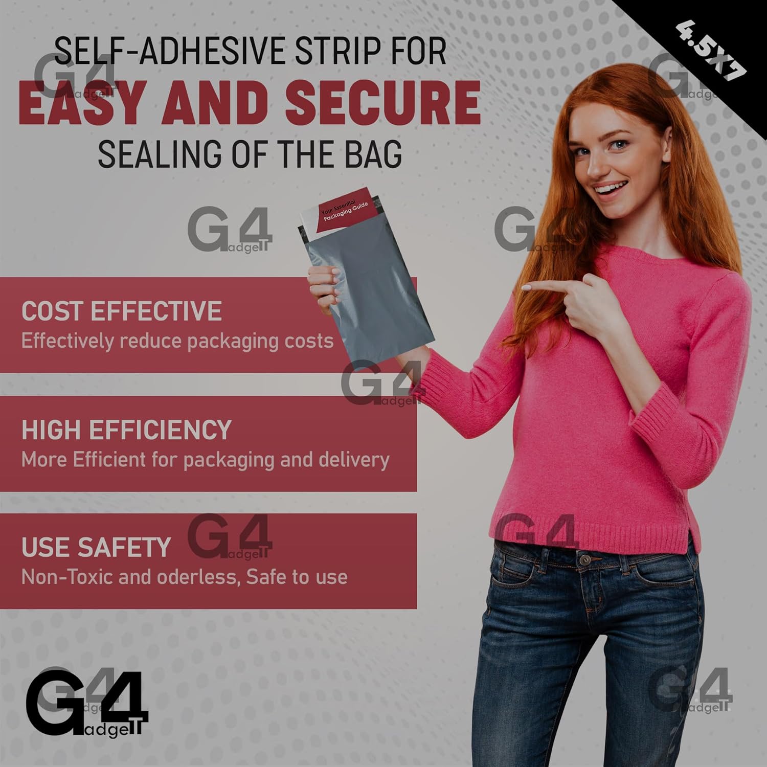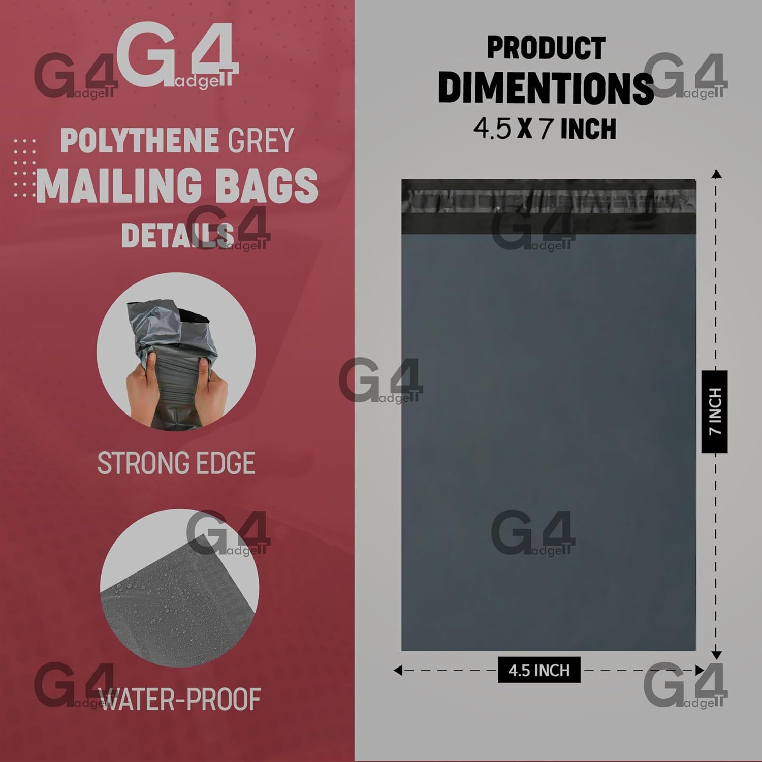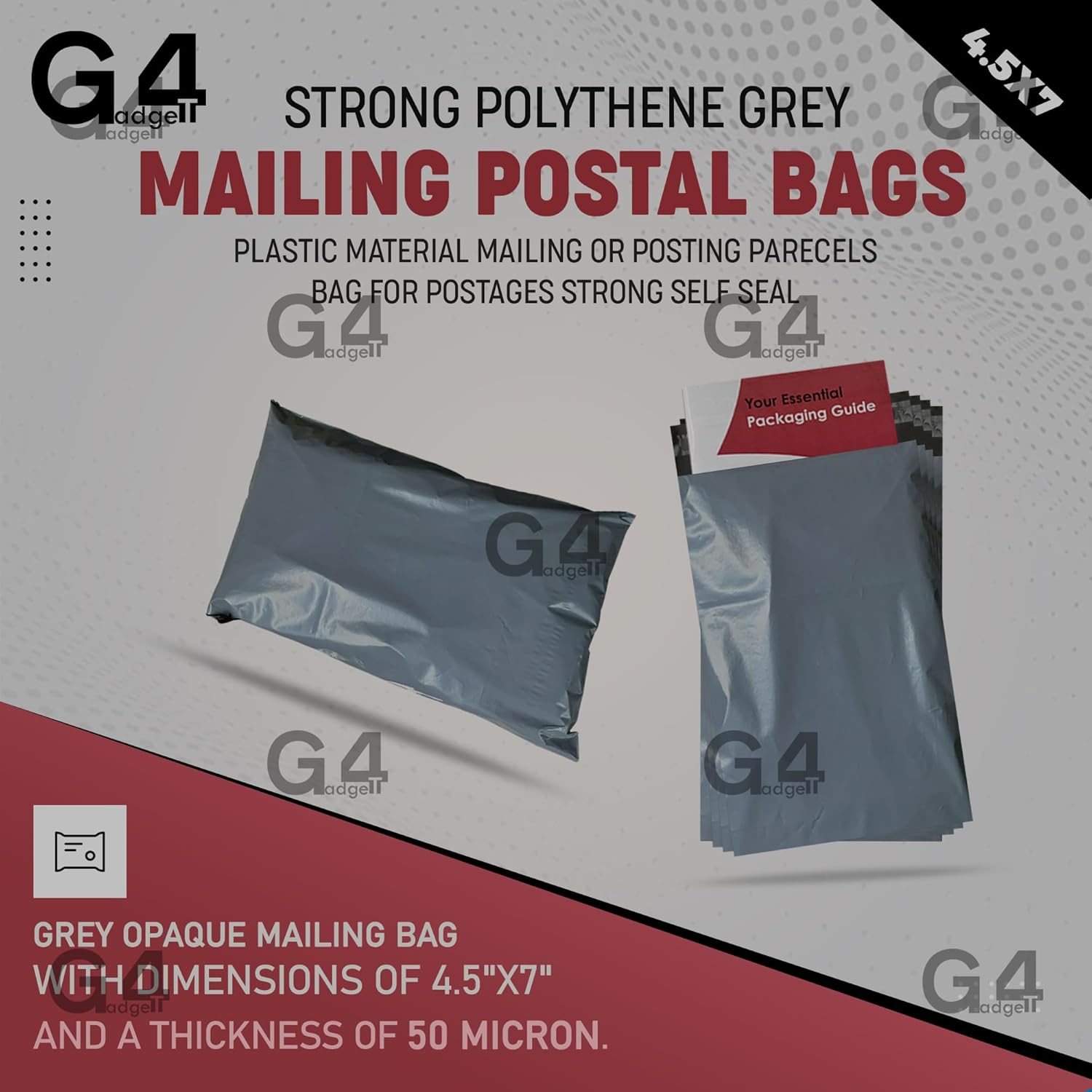 G4GADGET 100x 4.5×7 Inch Strong Mailing Bags – Grey Parcel Bags, Postage Bags, Poly Postal Bags Self Seal Ideal for Packaging Mailers Posting Shipping Post Parcels Package Bags