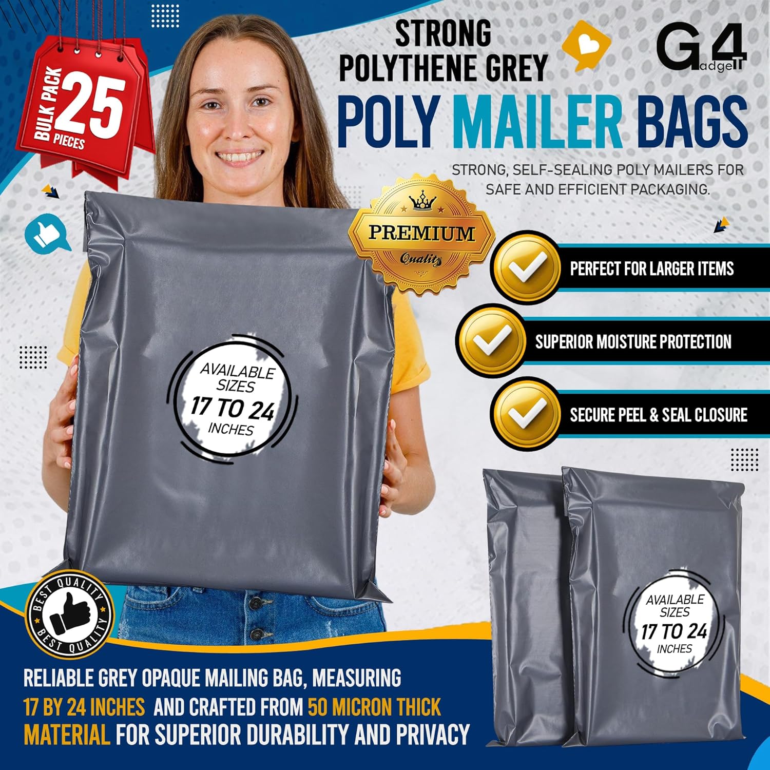 ![G4GADGET 25 Pack Large Grey Mailing Bags 17x24 [432mm x 610mm] – Strong Postage Bags for Clothes, Vinted Shipping, Parcel Packaging, Delivery, Mailing & Posting - Image 5](https://discountselfsealbags.co.uk/wp-content/uploads/2026/02/81arHEi8kIL._AC_SL1500_.jpg)
