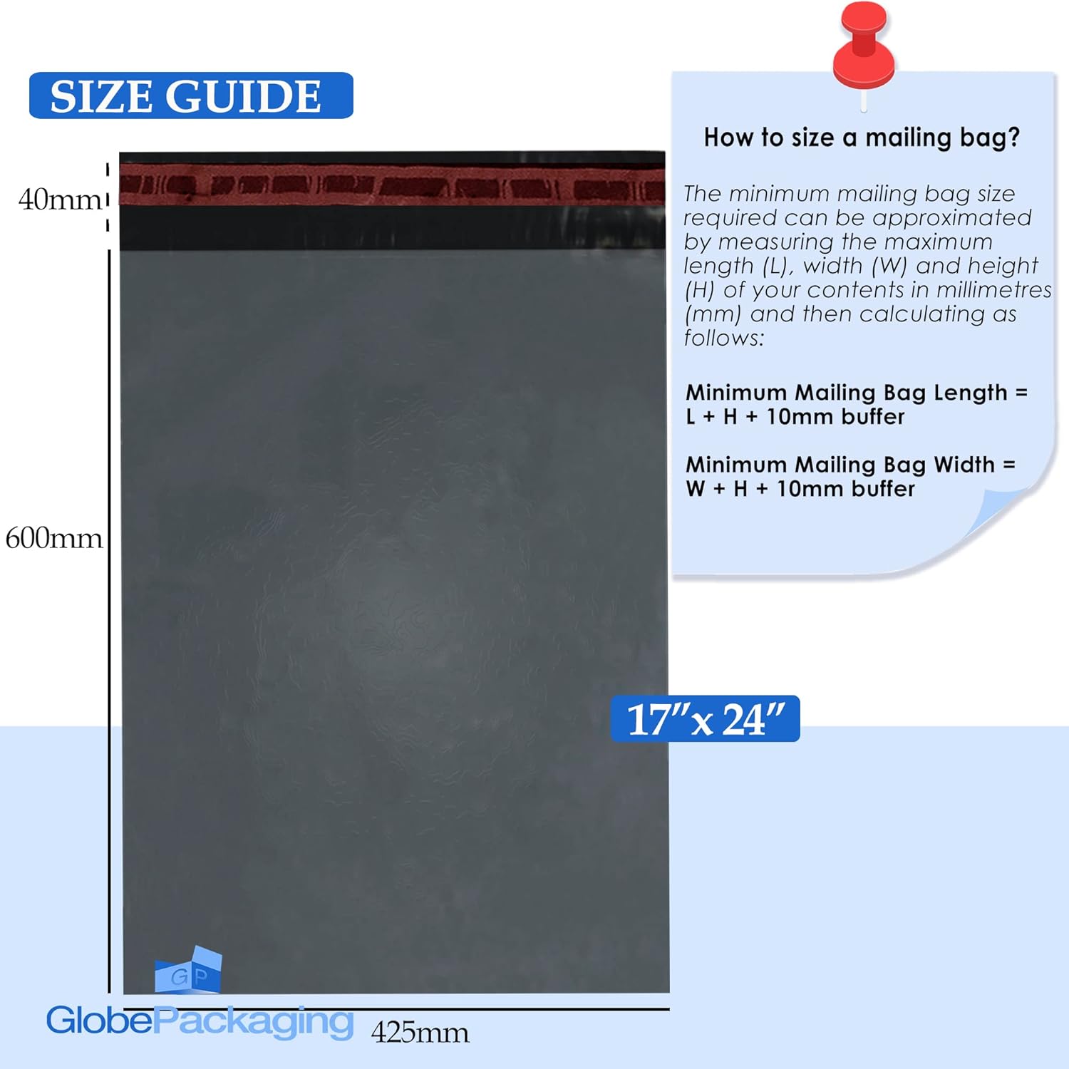 Globe Packaging 25 x Strong Large Grey Mailing Bags (17×24 inches) with Peel & Seal Strip – Poly Mailers, Postage Bags, Postal Packaging for Shipping & Posting Parcels, Books, Clothing & More