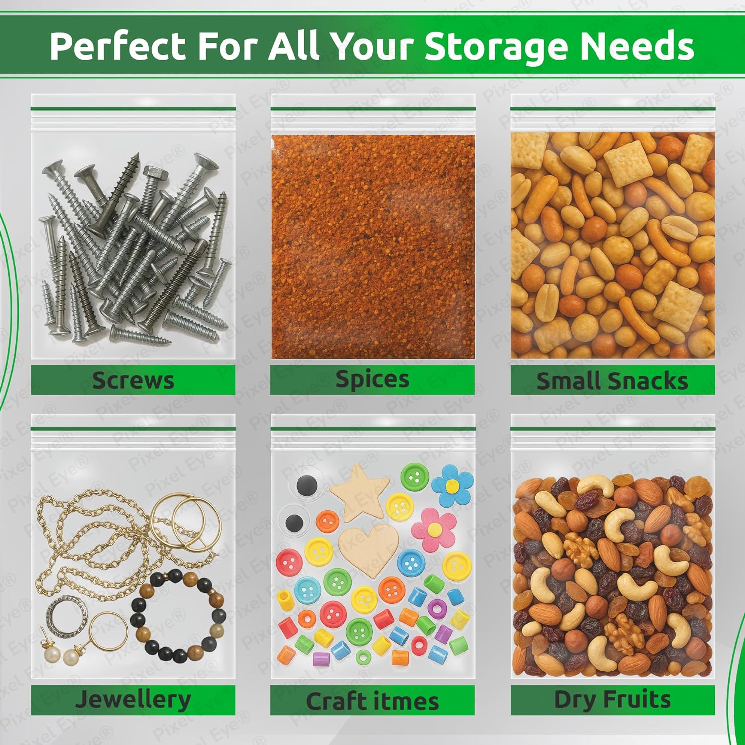 Each pack contains 100 resealable bags, providing a substantial supply for home, office, or travel use. Their transparent design allows for easy identification of contents without the need to open each bag. Additionally, the lightweight and compact nature of these bags helps reduce clutter and keeps items neatly arranged.