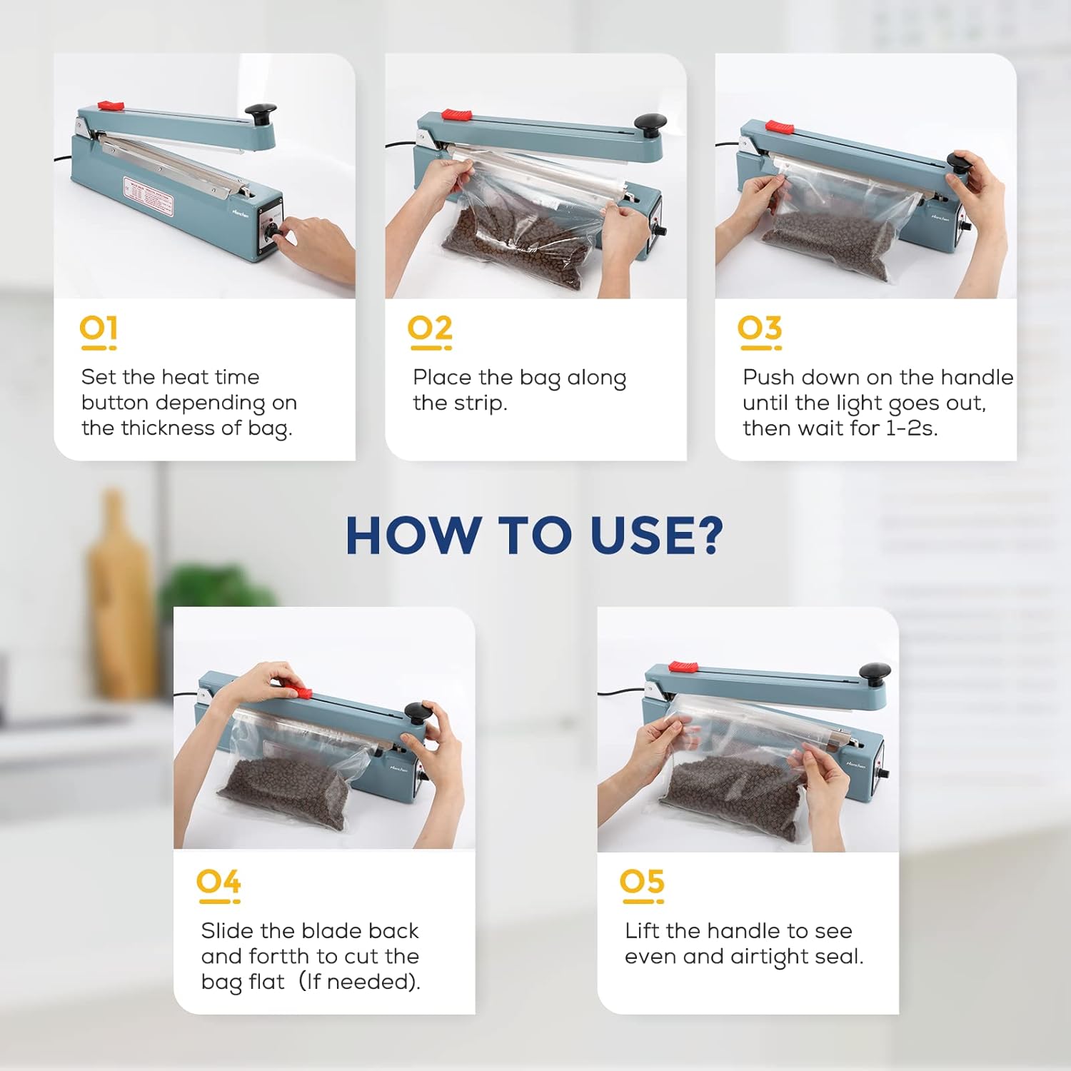 - Versatile for sealing various bag materials and widths.