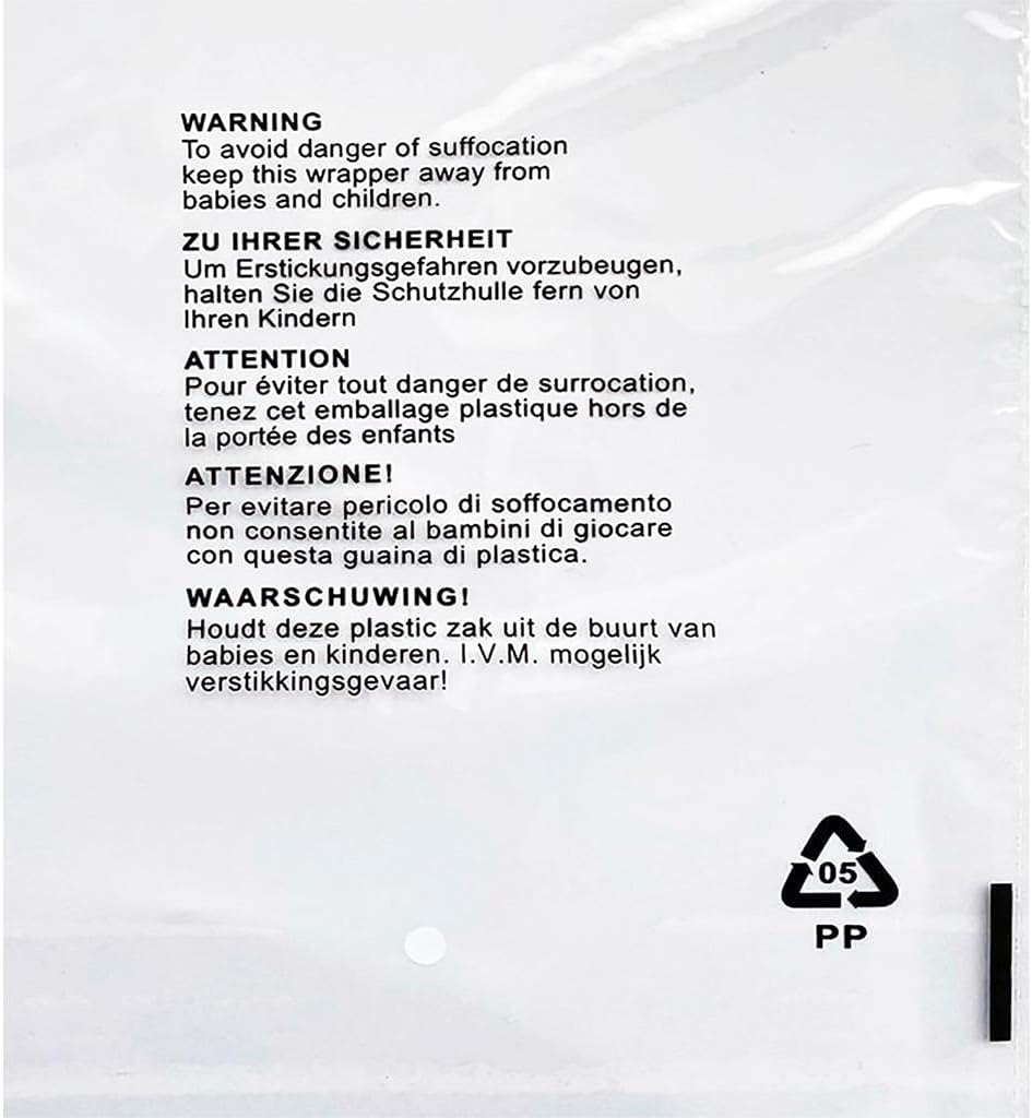 JeeJaan® 100 Pcs of Clear Polypropylene Bags 9 x 12 in Opp Mailing Bags 230 x 305 mm Plastic Envelopes for Clothes with Safety Warning