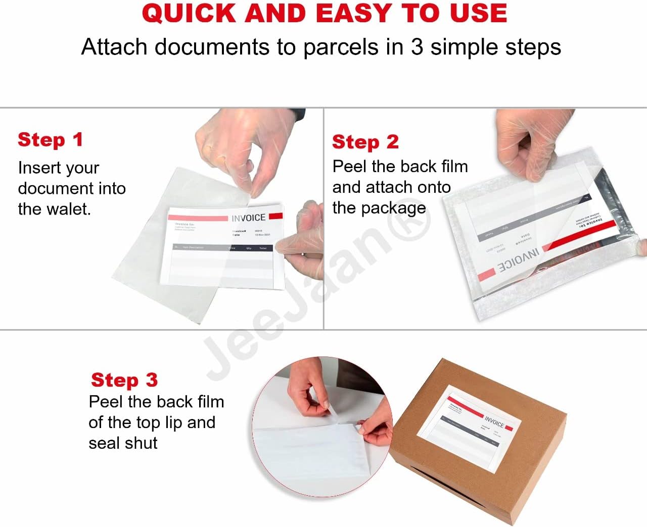 JeeJaan® 100 Pcs of Plain Document Enclosed Wallets A5-225 x 165 mm – Strong Clear Plastic Shipping Pouches Peel and Seal – Document Wallet for Multiple Uses
