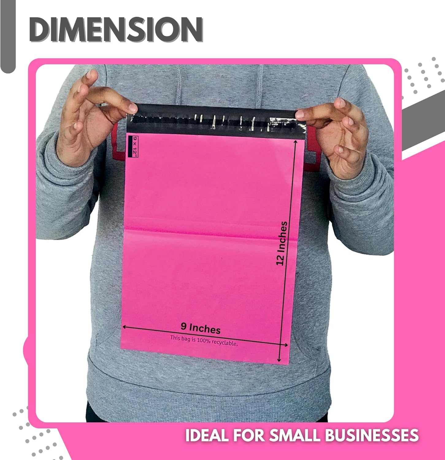 JeeJaan® 50 Pcs Pink Postage Bags 9×12 in Packing Bags (228 x 305 mm) Poly Mailers Parcel Bags Strong Recyclable Plastic Poly Mailer Postal Bags Tear-Proof Courier Bags for Envelope & Shipping