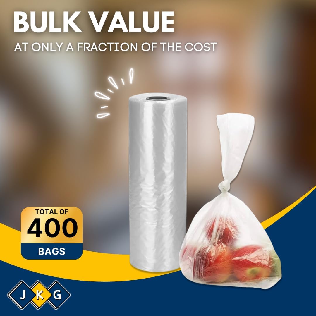 JKG® 400 x Medium Food and Sandwich Bags | Fridge Freezer Food Bags Rolls – Kids Sandwich bags | Clear Plastic Bags All Types of Preservation | KEEP FRESH (18cm x 20cm)