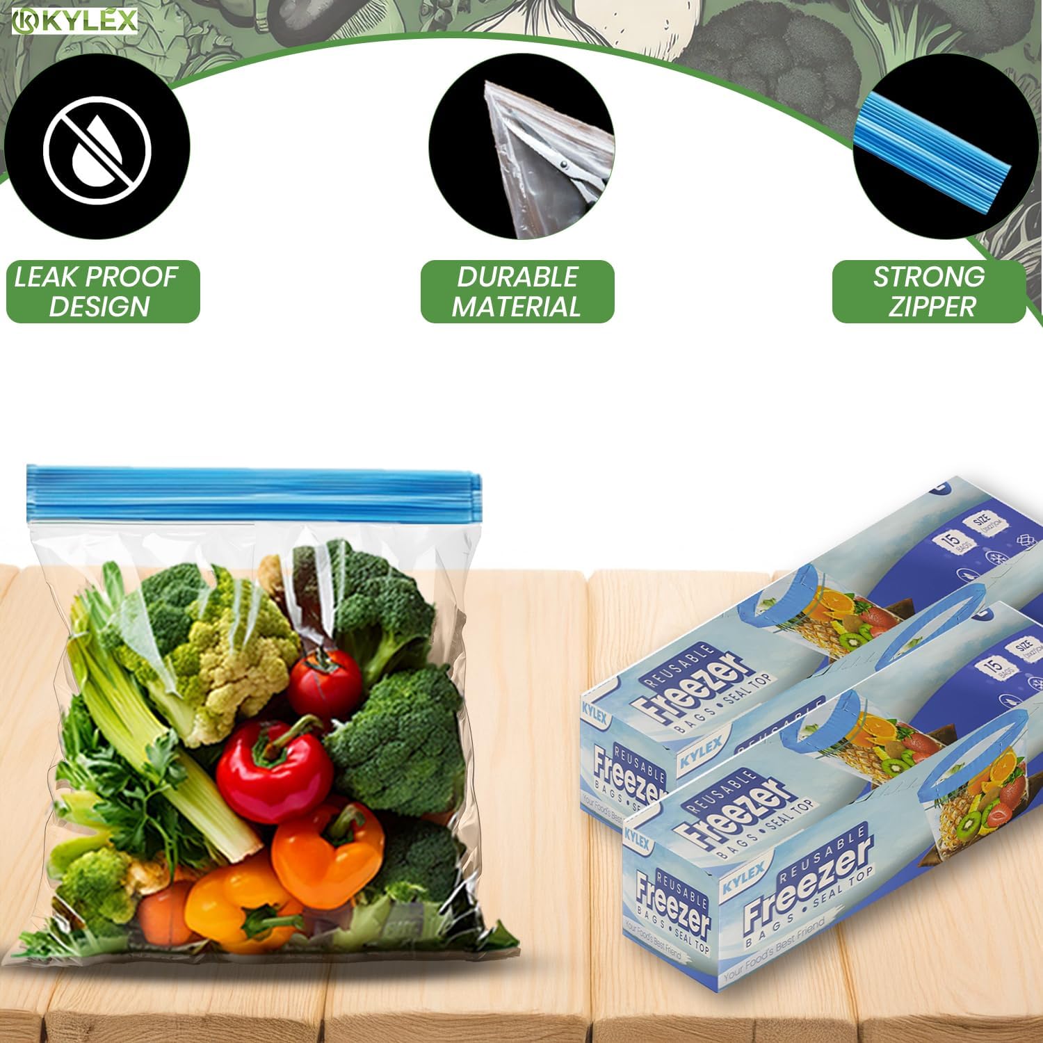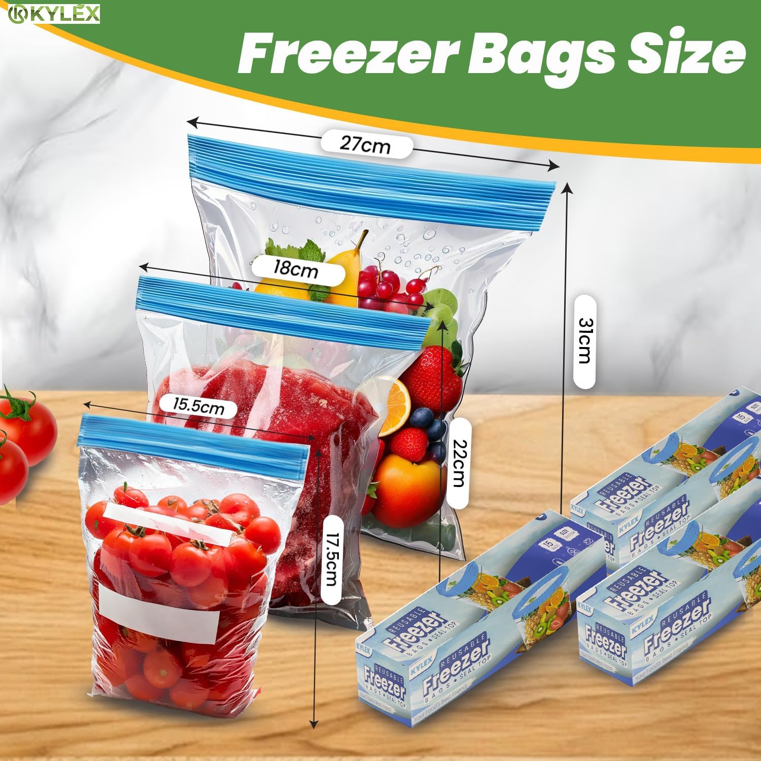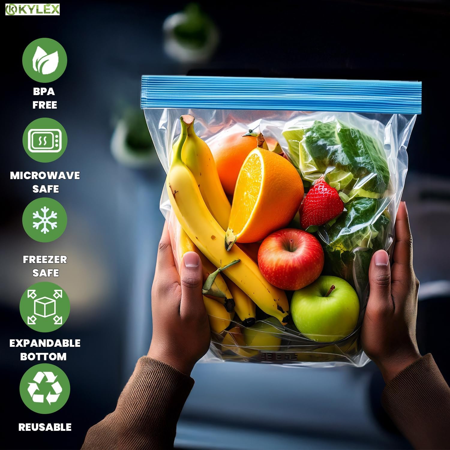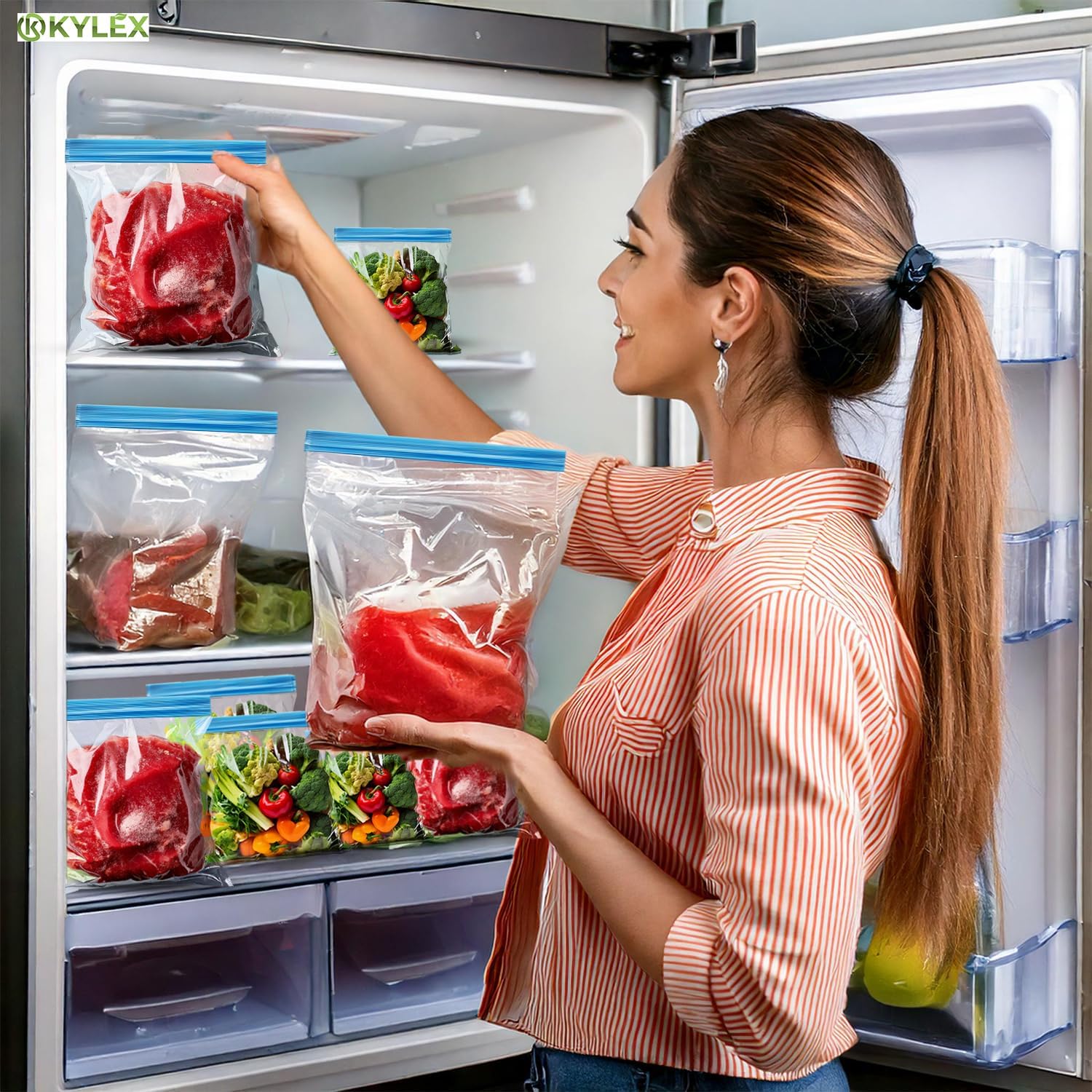 Kylex 70 Pcs Food Storage Freezer Bags – Reusable BPA Free Zip Seal Bags – Heavy Duty Food Bags for Fruits, Veggies, Meat & Snacks – Freezer Zip Lock Bag – (3 Sizes)