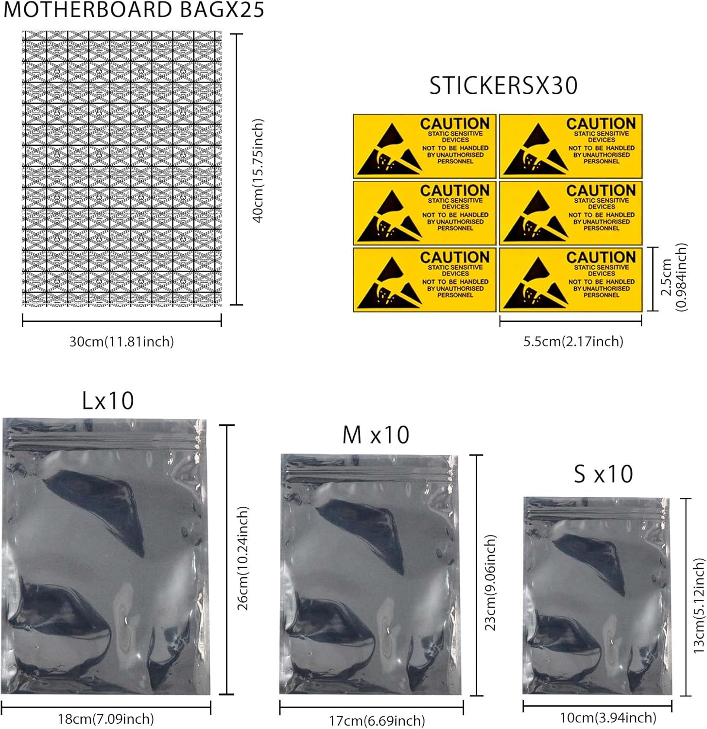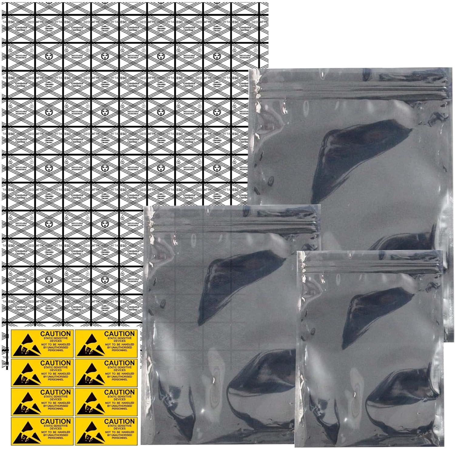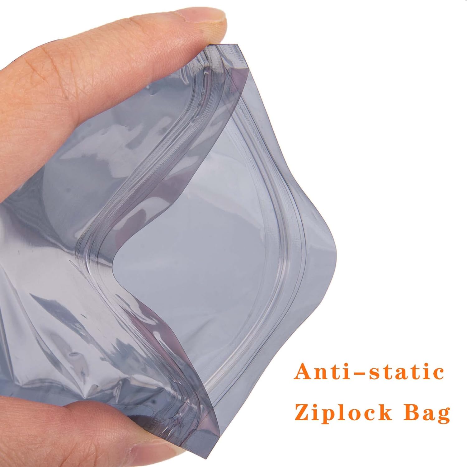 Larcenciel 55 Pcs Anti Static Bags ESD Shielding Bag w/Labels, Mixed Sizes Open Top Large Resealable PVC Antistatic Bags for SSD/HDD/Motherboard/Video Card/RAM
