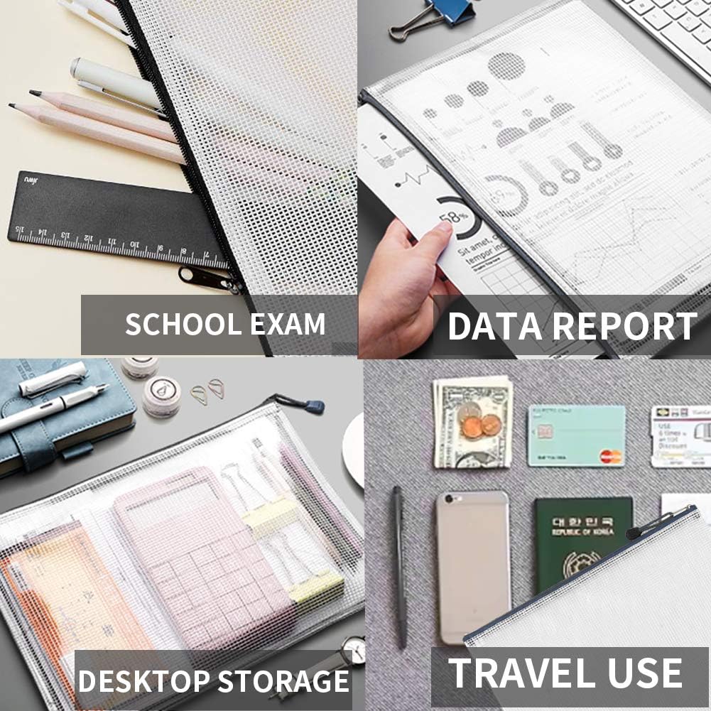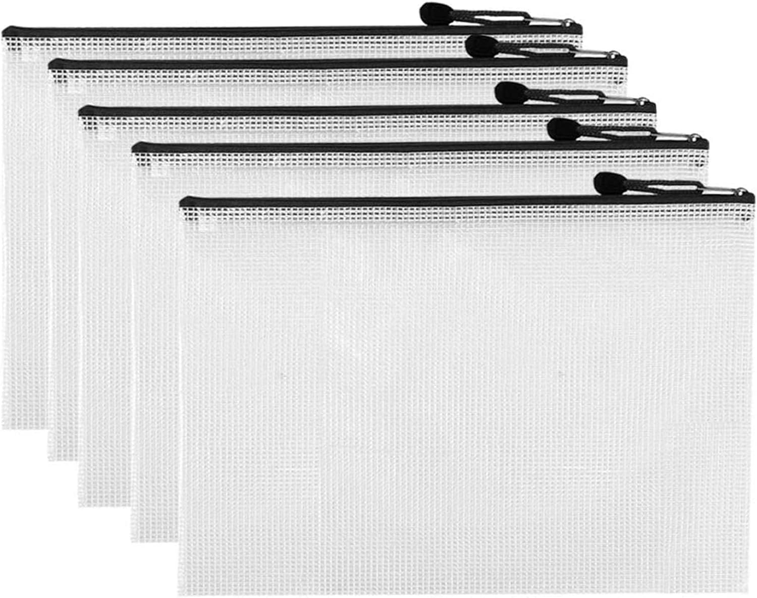 Mesh Zipper Pouches – Zipper File Bags/Waterproof Document Bags/Plastic Wallets/File Folders for School Driving Test/Office Receipts/Household Bills/Travel Storage (Black, A4(5PCS))