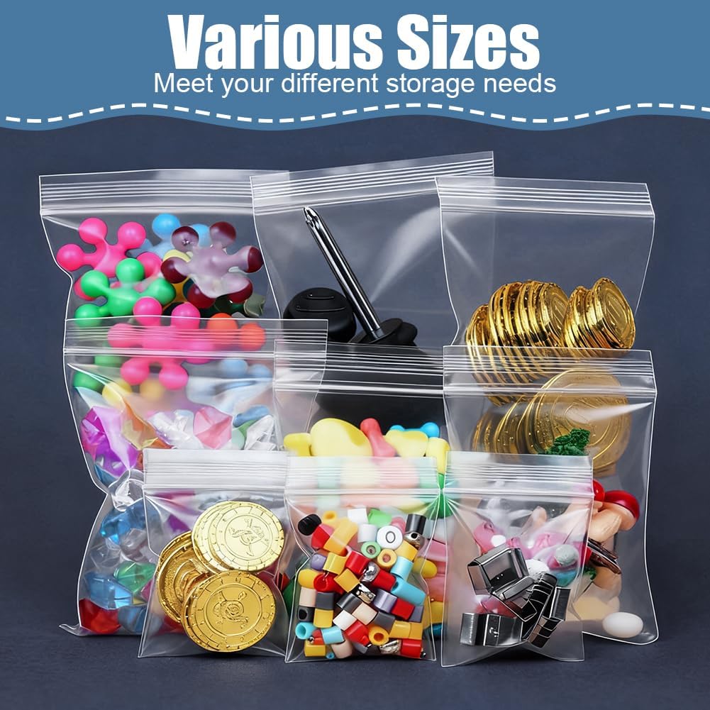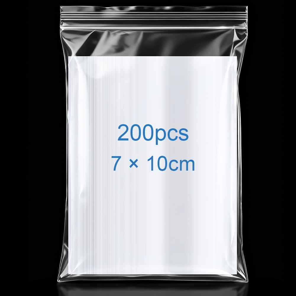 OFFCUP 200pcs Grip Seal Bags, Strong Resealable and Reusable Clear Plastic Zip Lock Bags, Small Clear Bags for Food Storage Jewellery Medicine and More (7x10cm)