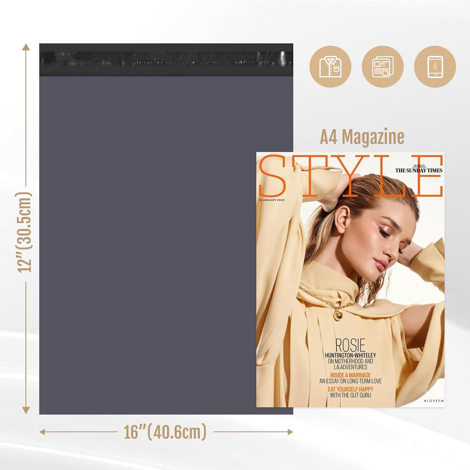 Parcel Bags Switory Mailing 12X16 Inch Postal Bags Self Seal,Waterproof, Shipping Mailers Mailing Bag for Clothes Envelopes Postage Bag for Packaging, 100Pcs (Grey)