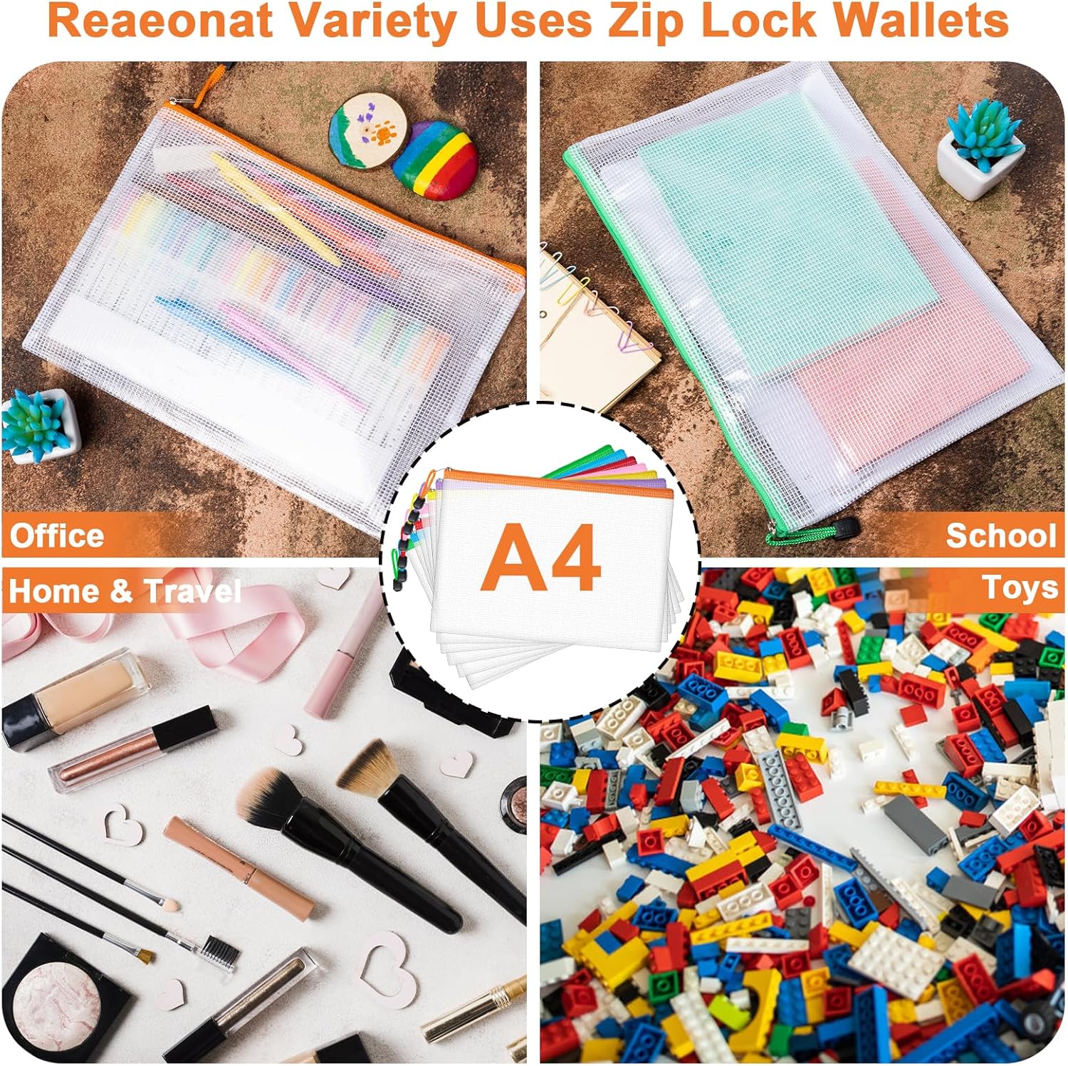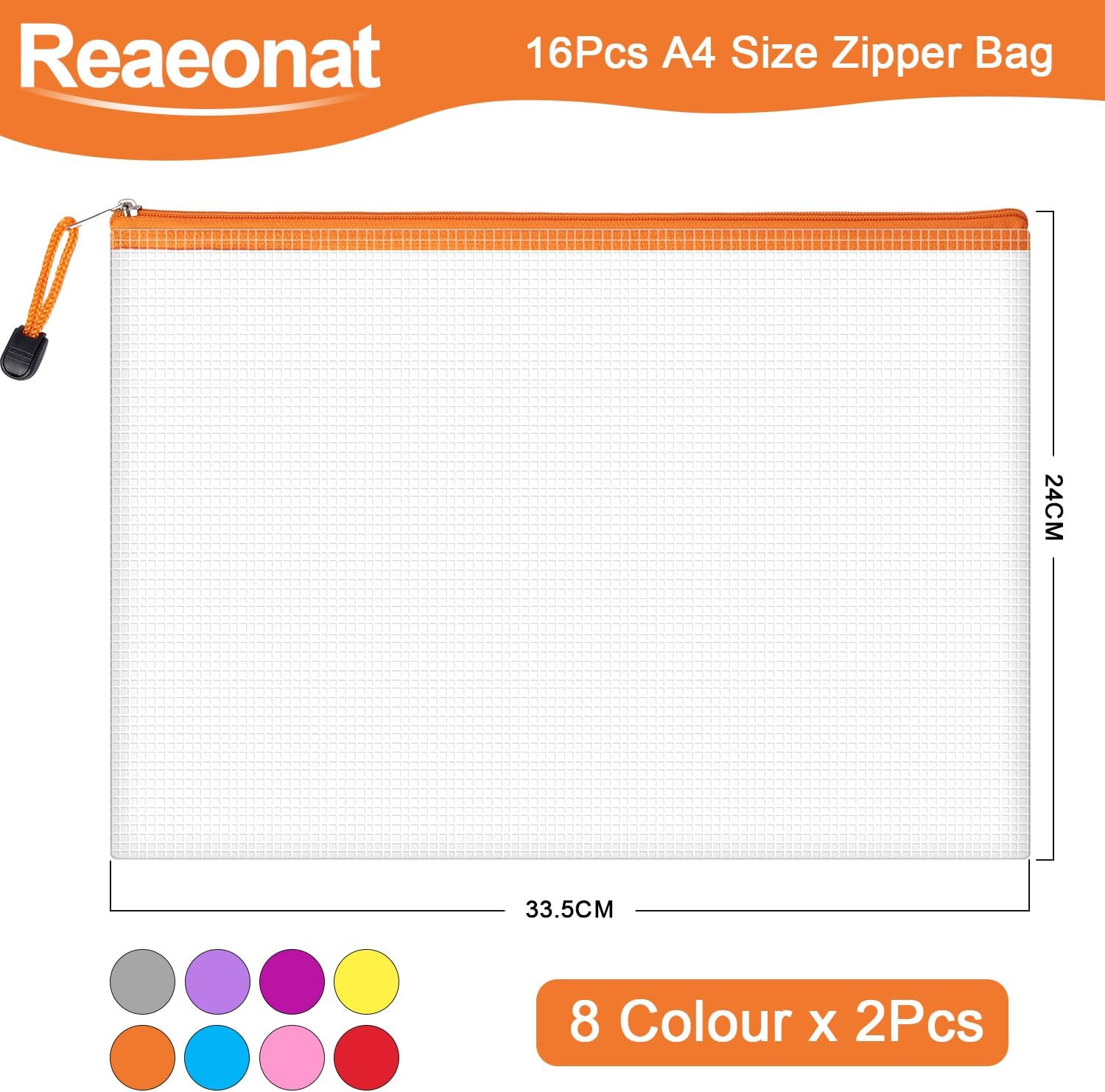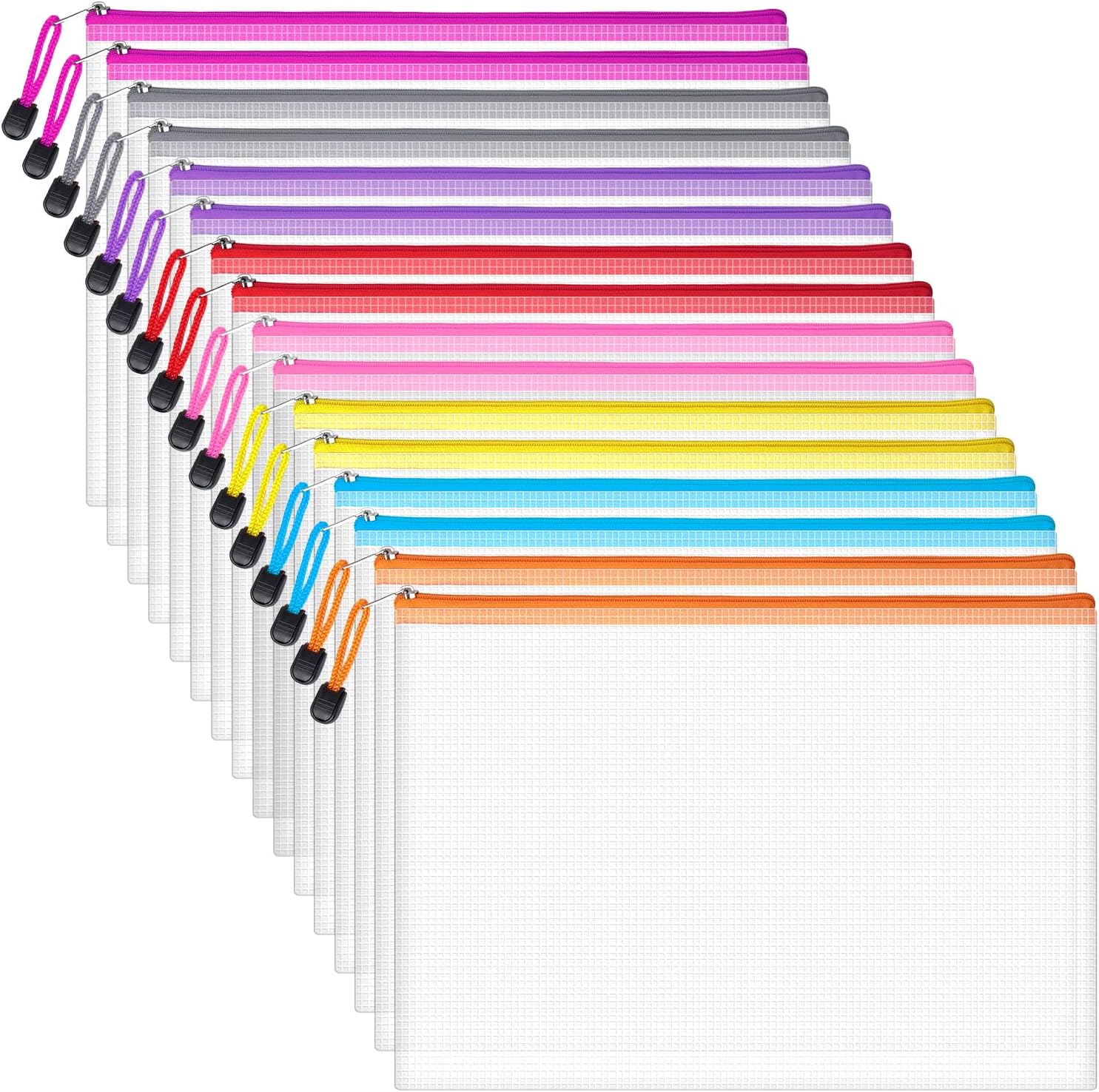 Plastic Wallets, 16 Pack A4 Document File Folder Zipper Pockets Zip Lock Bags for School Office Home Travel Storage