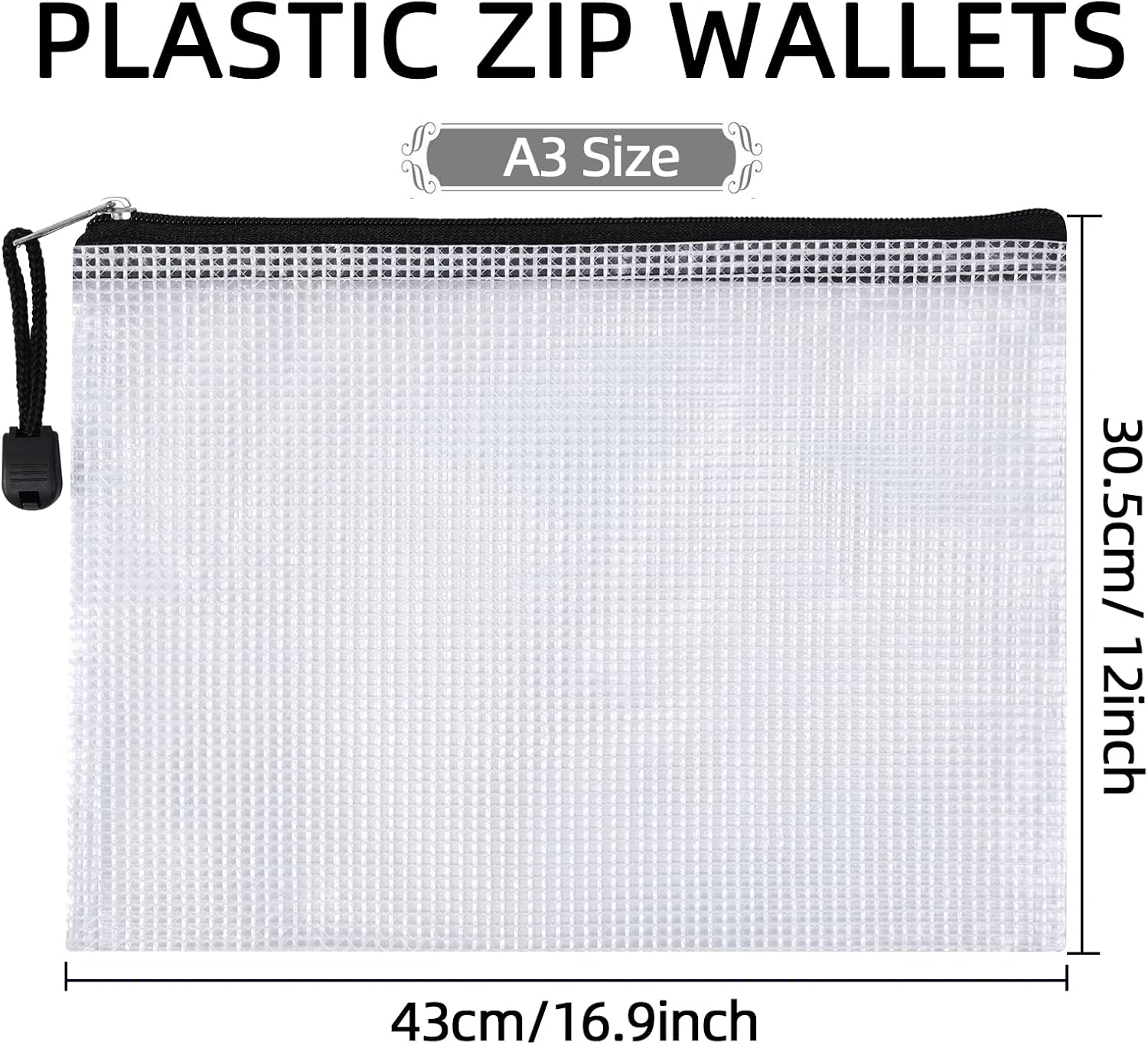 Plastic Wallets A3 Folder A3 Zip Wallets Large Ziplock Bags Zipper Bags Plastic Document Folders, Black(12PCS)