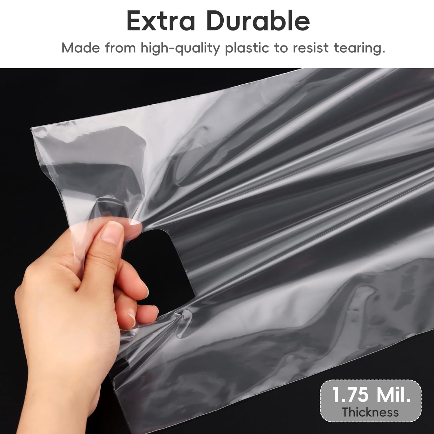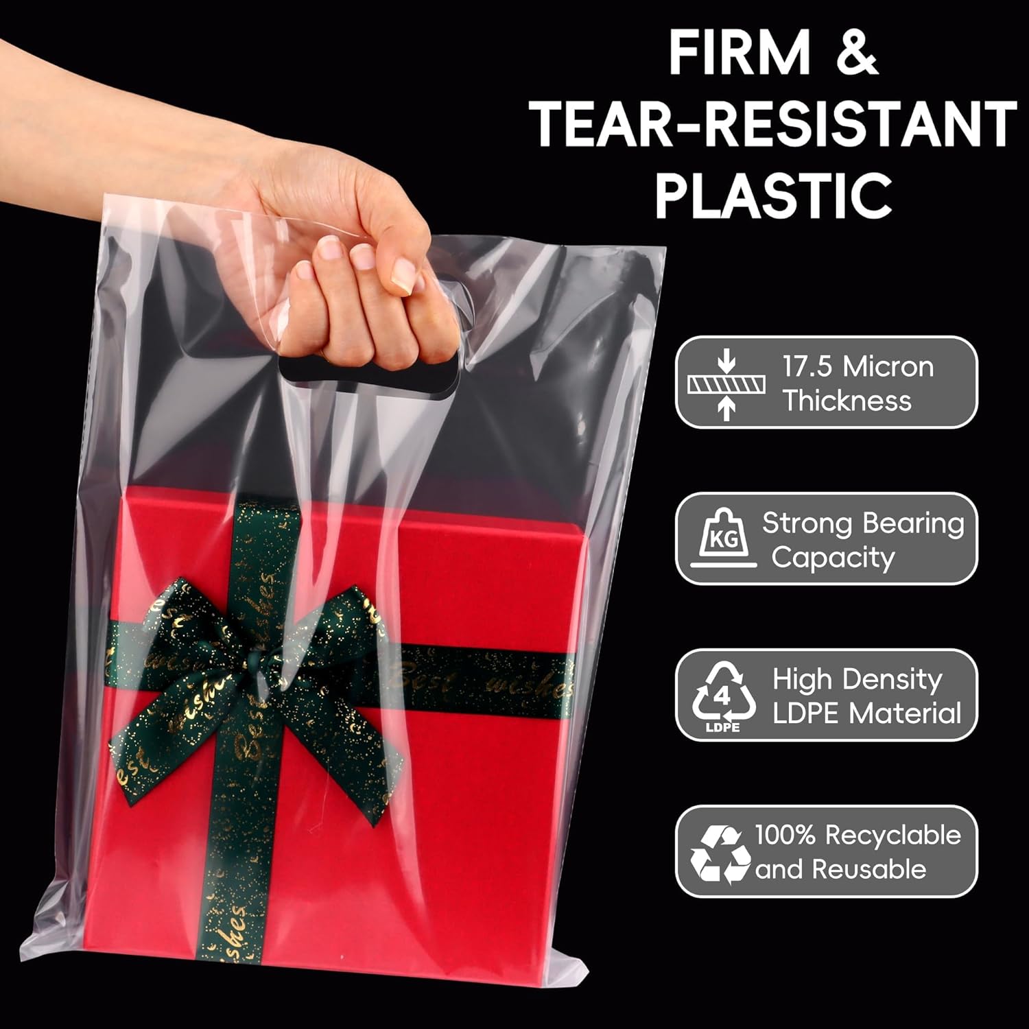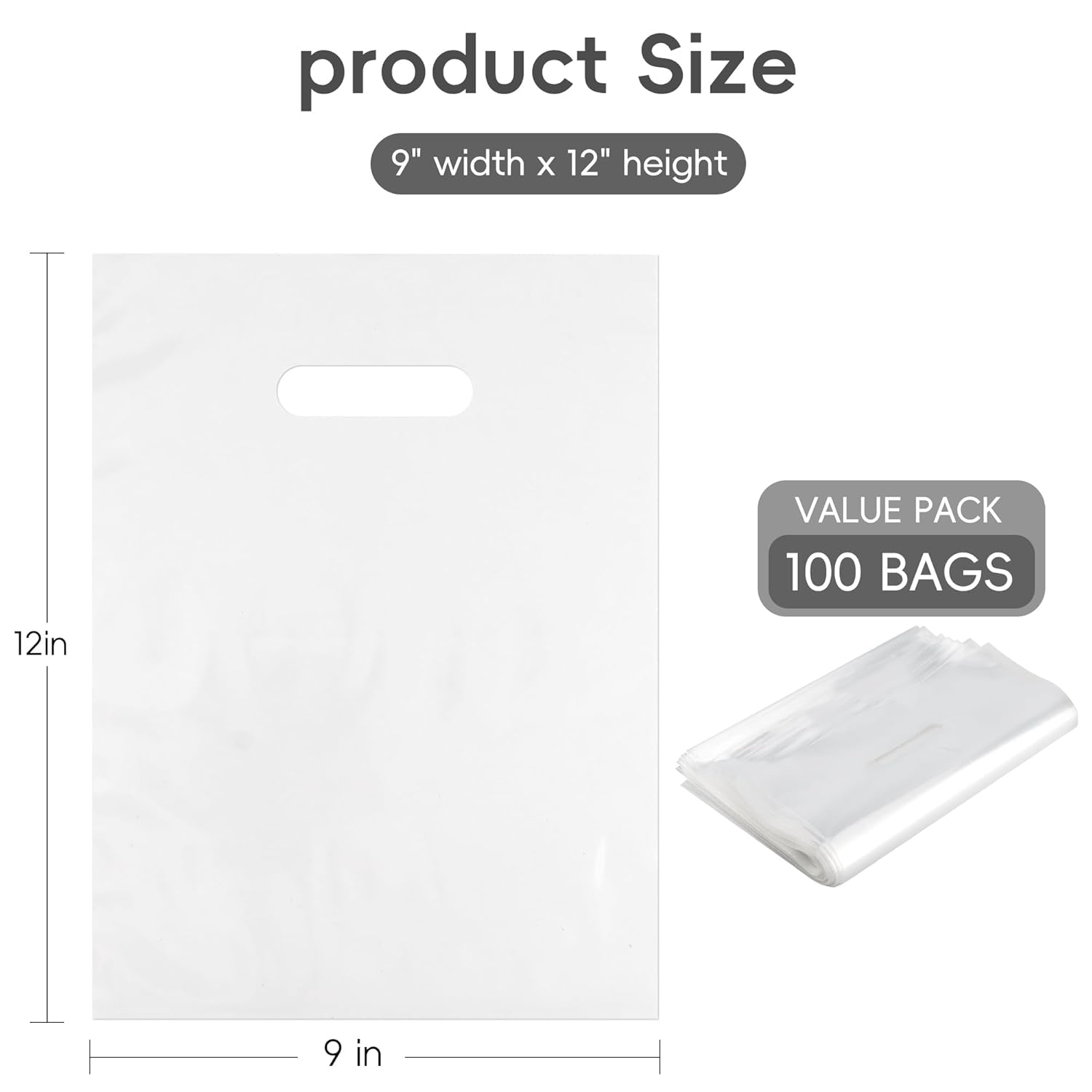 POPGIFTU Clear Plastic Carrier Bags 100 Pack – 23x30cm Small Retail Shopping Bag with Handles, Clear Merchandise Bags for Small Business, Boutique, Trade Shows, Store, Wholesale, Gift Packaging