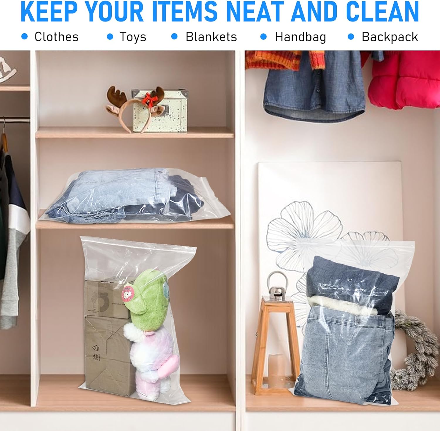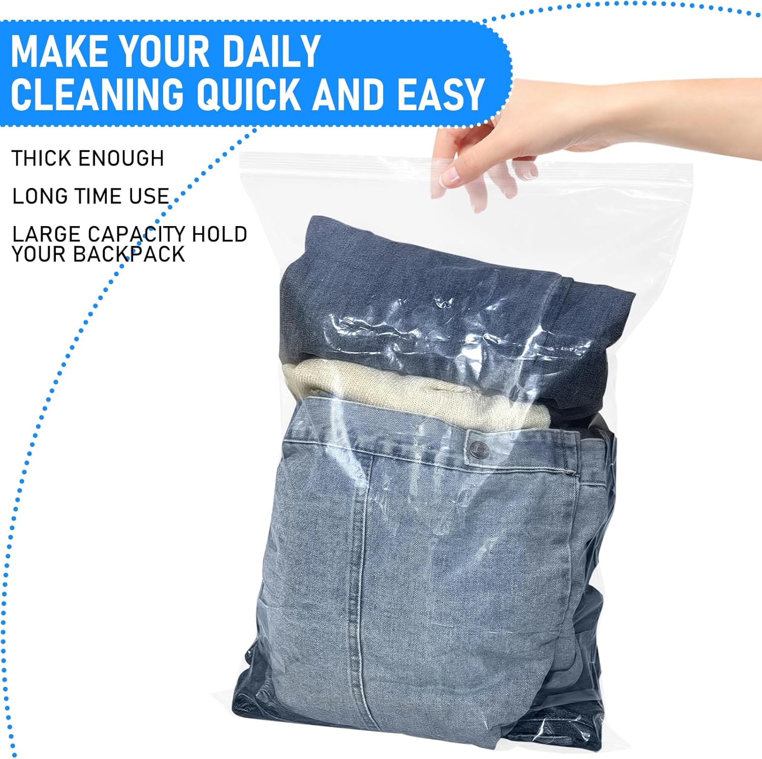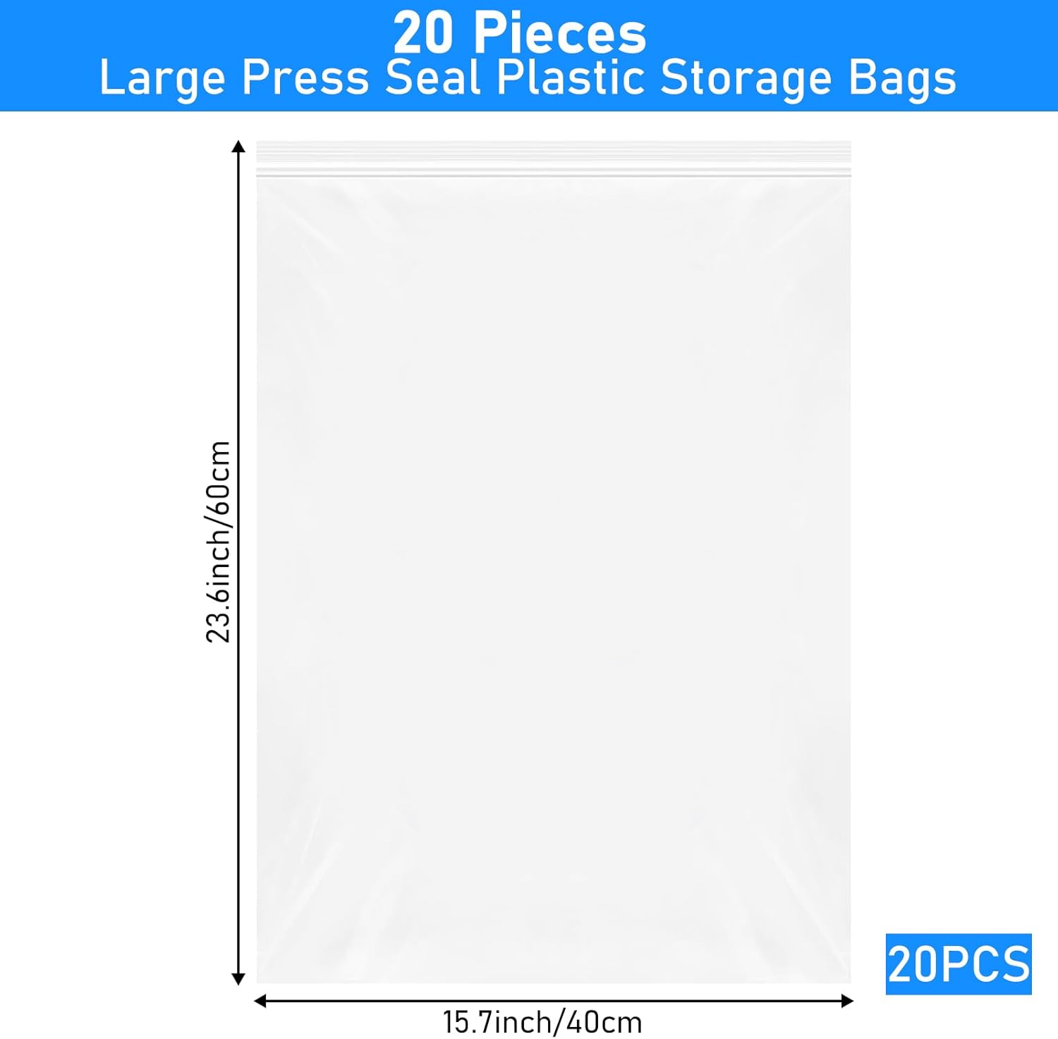 Rainmae 20PCS 5 Gallon Extra Large Zip Lock Bags,6.3 mil Large Clear Ziplock Bags 40×60cm Reclosable Storage Bag for Coats,Bulky Clothes,Bath Towels and Organizing