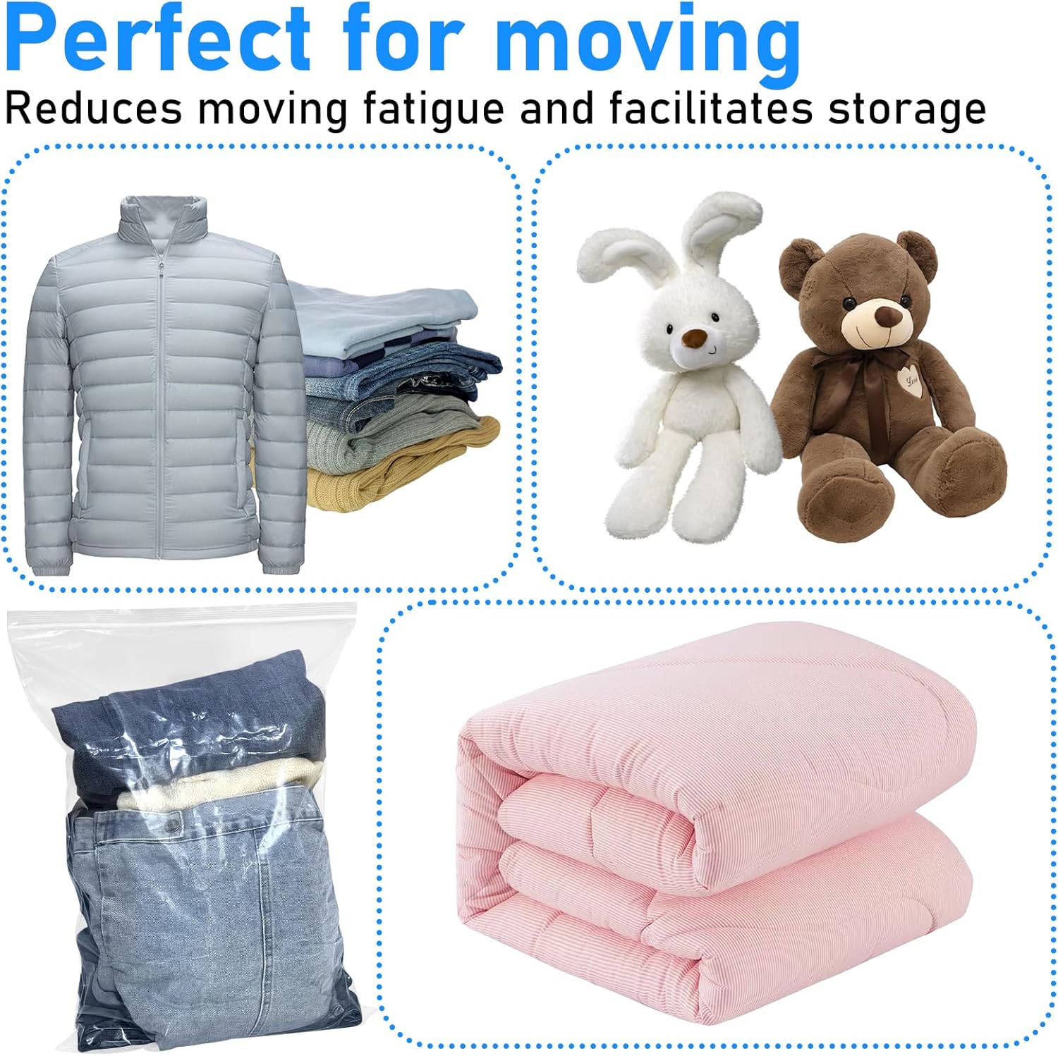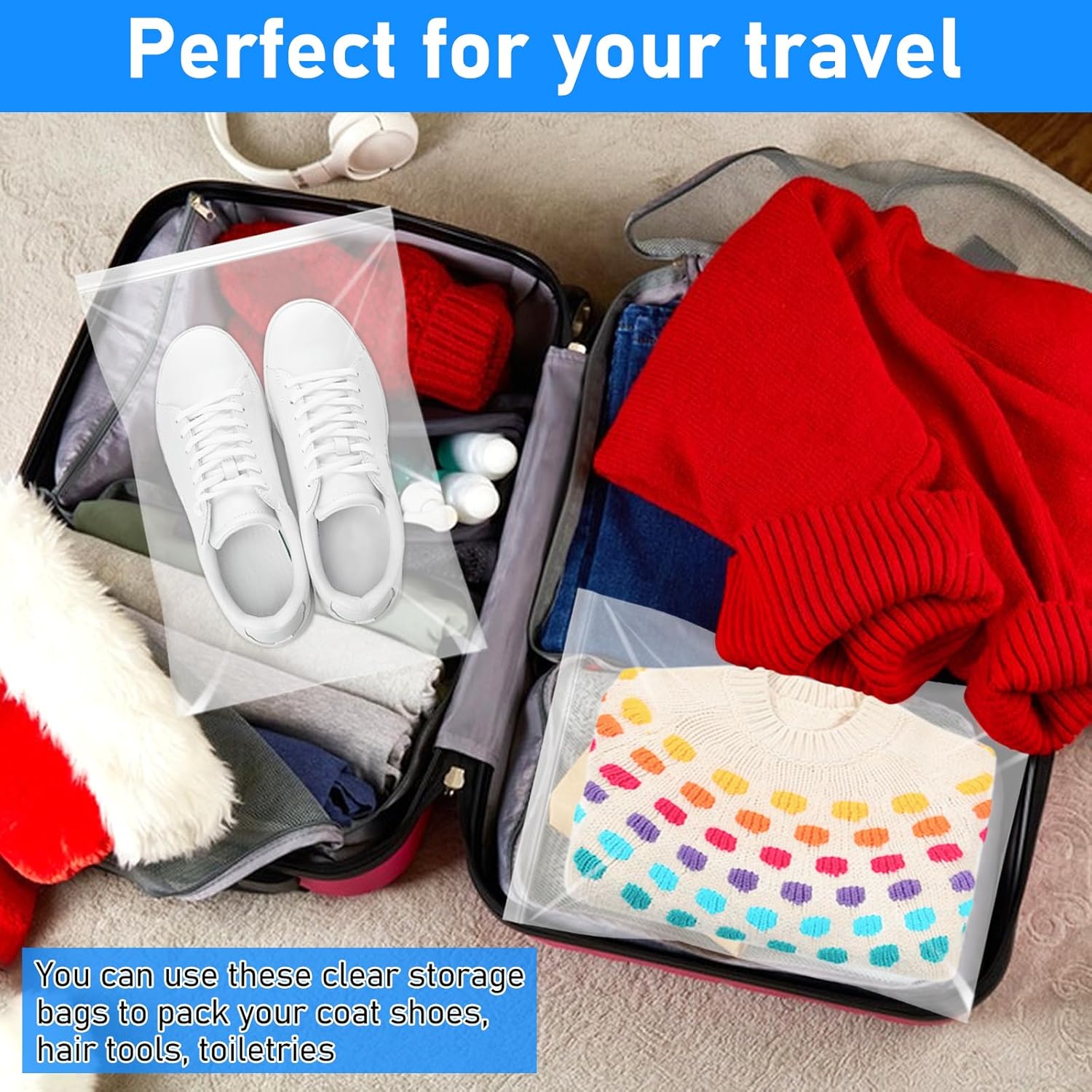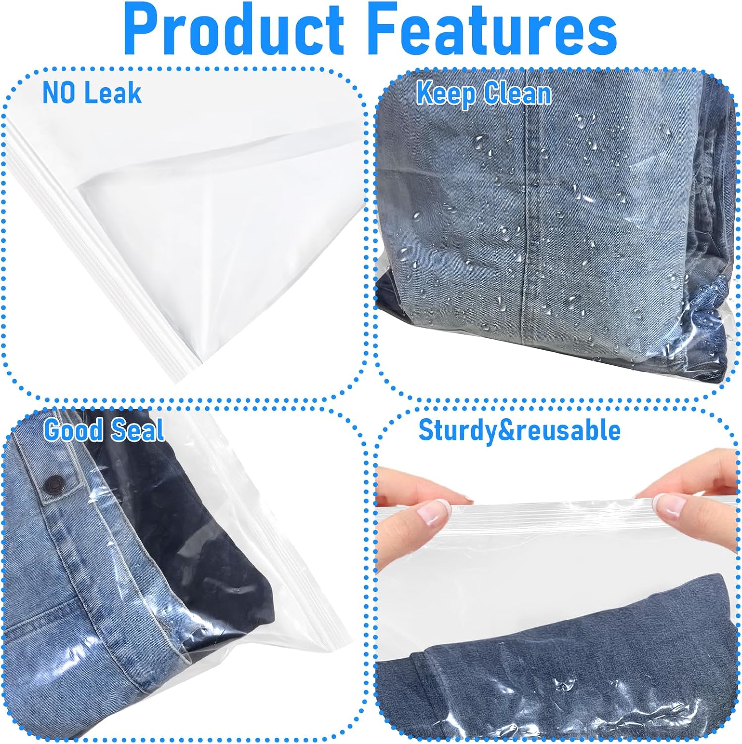The Rainmae 20PCS 5 Gallon Extra Large Zip Lock Bags are designed for versatile storage needs. Made from durable PE plastic, these bags measure 40 x 60 cm and are 6.3 mil thick, ensuring they can handle bulky items like coats, blankets, and towels. Their clear design allows for easy identification of contents, making organization a breeze. The resealable feature provides convenience for frequent use, whether you're moving, traveling, or simply decluttering your home.