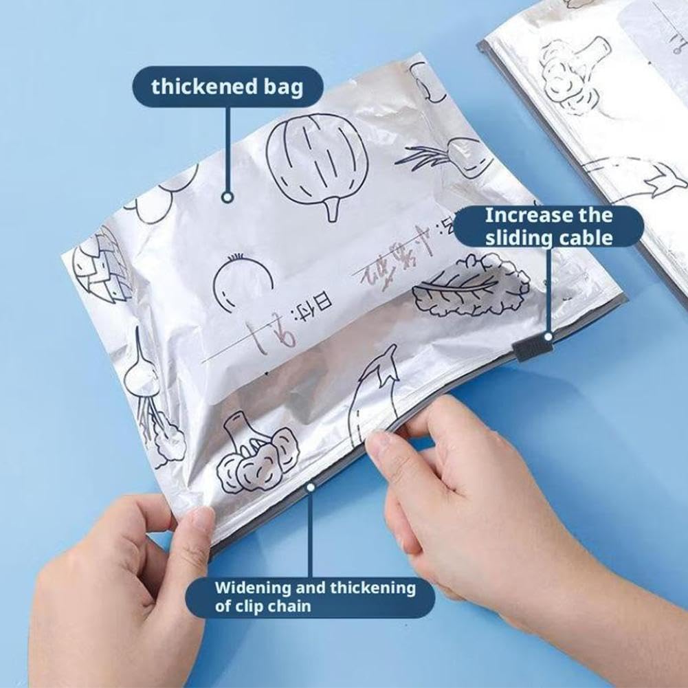Re-sealable Aluminium Foil Cooler Pouches, Frozen Meat Long Lasting Freshness,Food Storage, Sealable Food Bags with Label and Zip Lock Cooler Pouches for Meat, Vegetables, Milk, Sandwiches,30PC