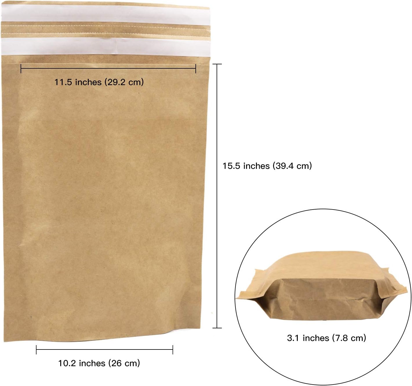 RUSPEPA Kraft Paper Poly Envelopes Mailer, Self Seal Shipping Bags, 100% Recyclable, Reusable Packaging Great Idea for T-Shirt Clothing Shipping Bag – 29.2 X 39.4 cm – 25 pcs