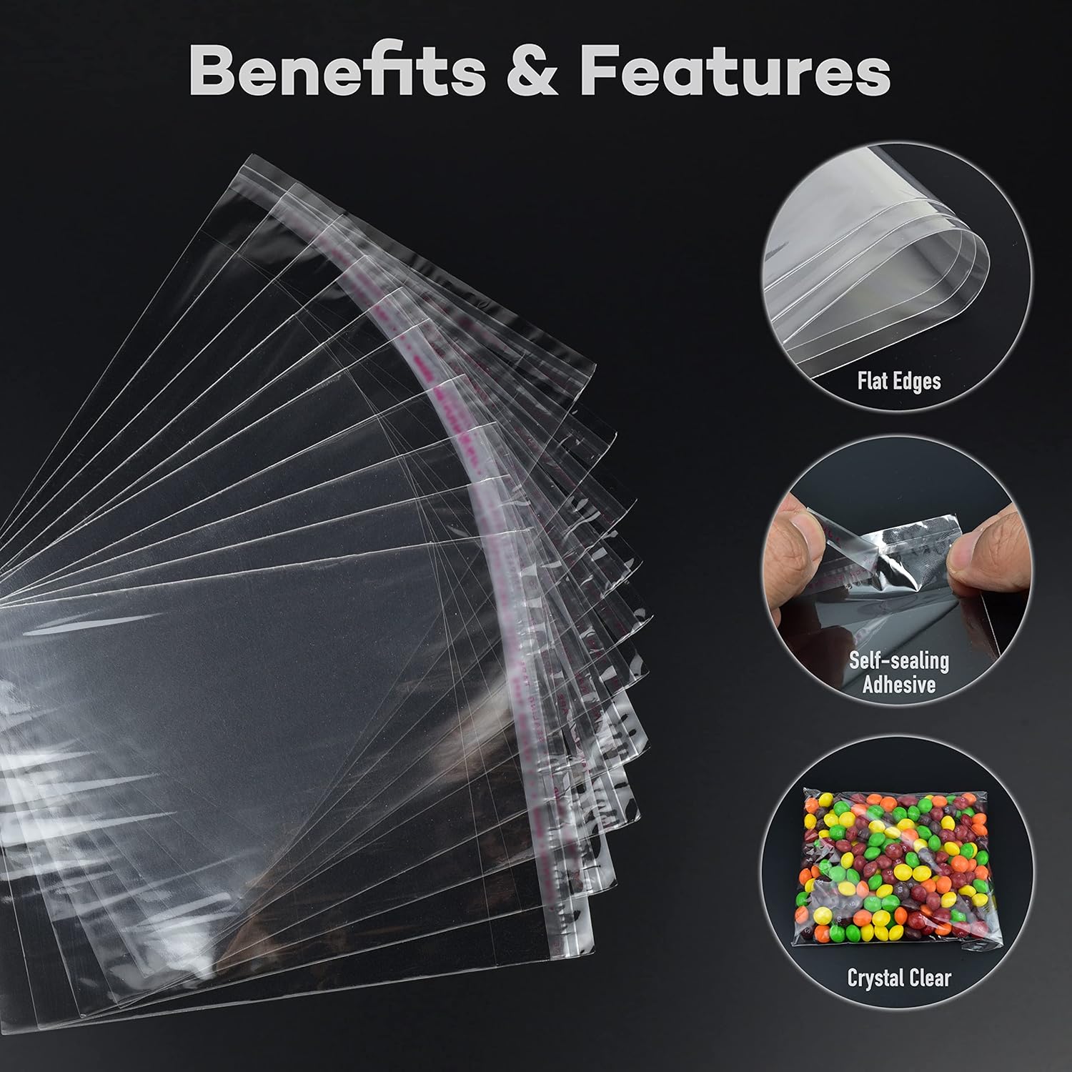 Self Seal Clear Cellophane Bags – Pack of 100 (5 x 7 inches) Food Safe Adhesive Bags for Sweets, Candy, Gifts, Jewelry, and Cards