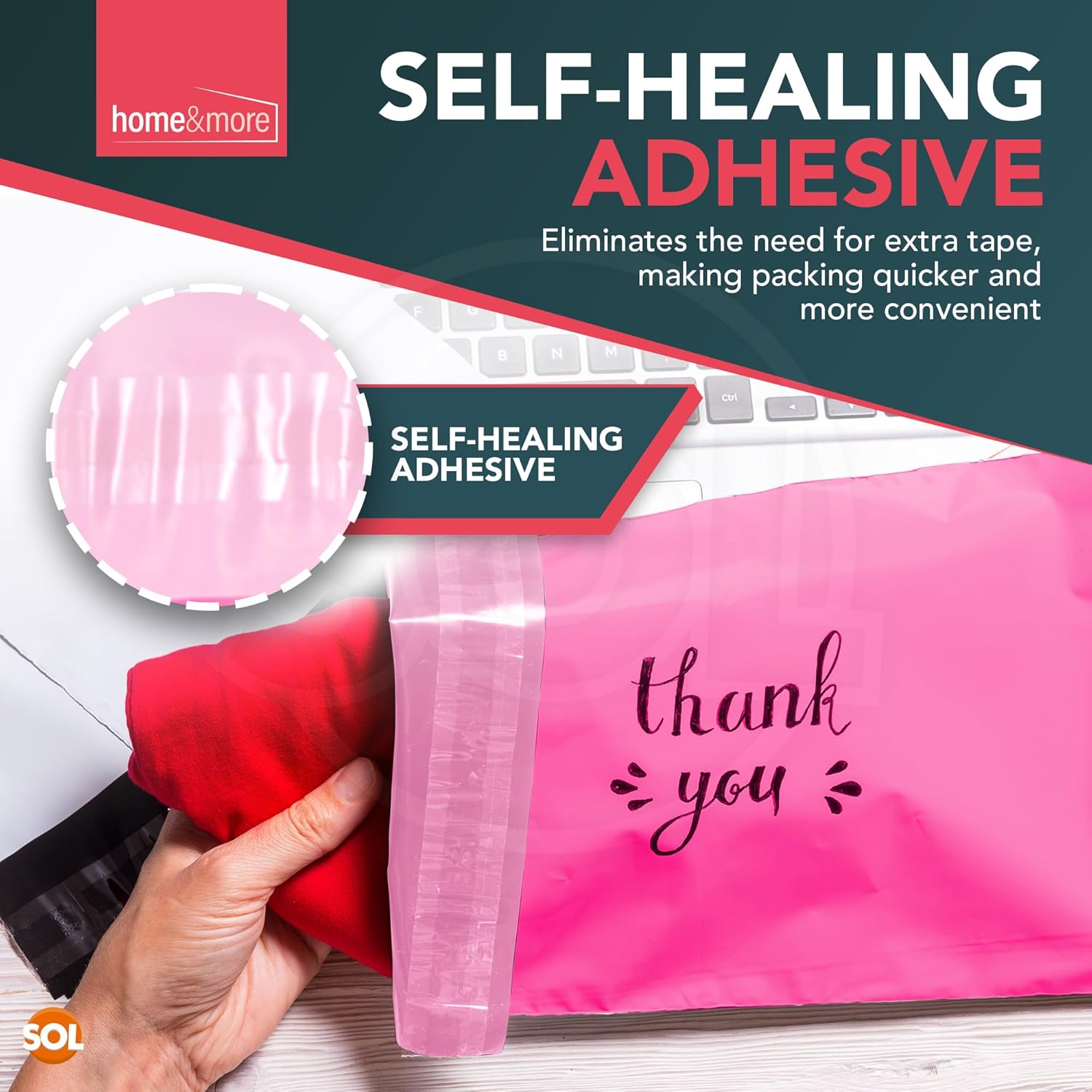 SOL 50pk Pink Assorted Mailing Bags Self Seal for Clothes Mixed Size Parcels Delivery Packaging Shipping Postal Cases for Shoes Documents Gifts and Lightweight Items Durable and Easy to Use