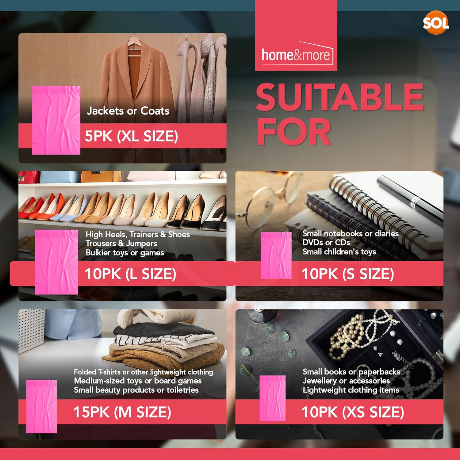 - Mixed sizes to accommodate different items
