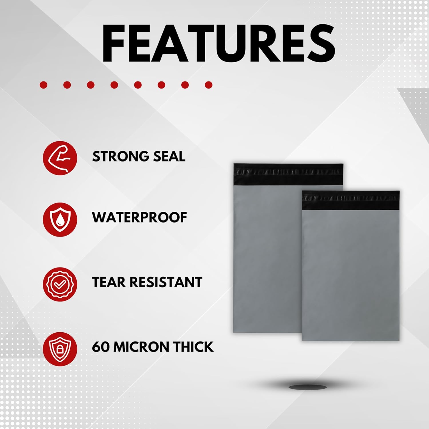 Somwell mixed grey mailing bags offer a practical solution for your shipping needs. This bulk pack includes 50 bags in two sizes: 25 bags of 10x14 inches and 25 bags of 12x16 inches. Made from durable 60 micron polythene, these bags are tear-proof and waterproof, ensuring your items are well-protected during transit. The self-seal adhesive strip allows for quick and secure closure, saving you time while ensuring tamper-proof packaging.