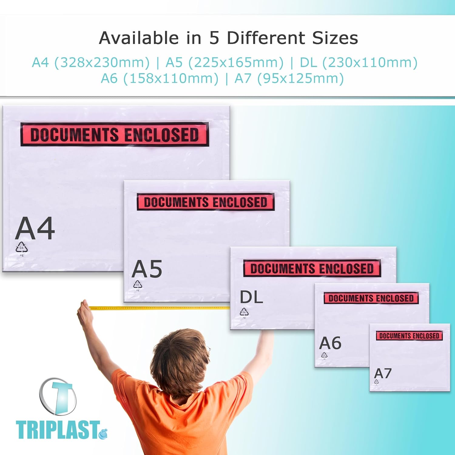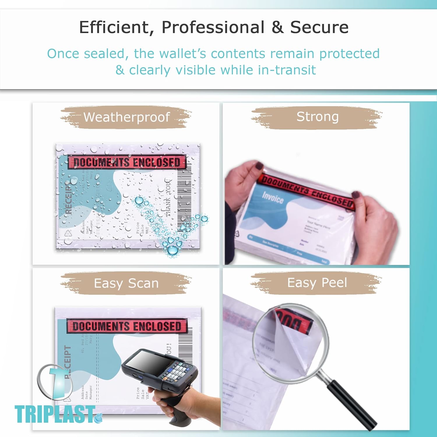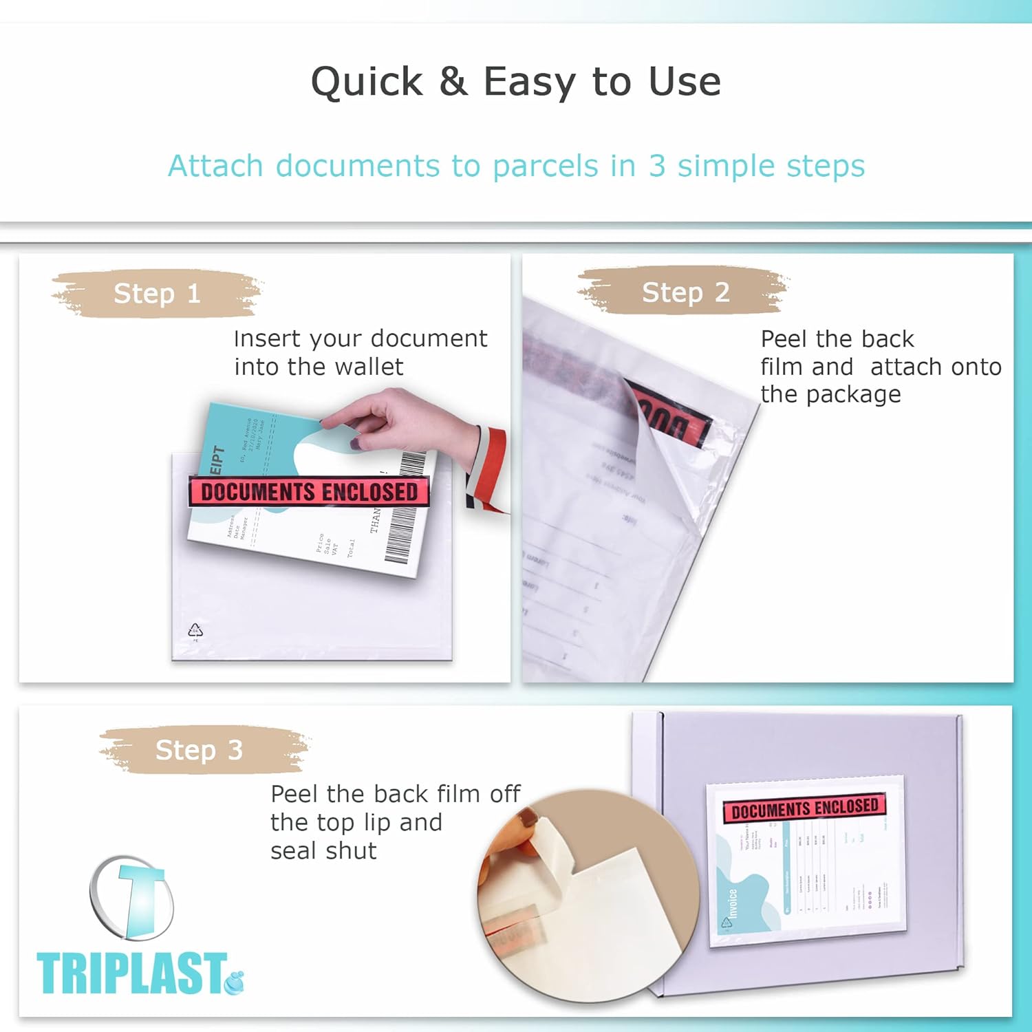 Triplast 100 x A6 Printed Document Enclosed Wallet (158 x 110 mm) | Peel & Seal Clear Plastic Envelopes/Sleeves/Pockets/Wallets | Attach Invoices, Packing Lists & Delivery Notes to Parcels