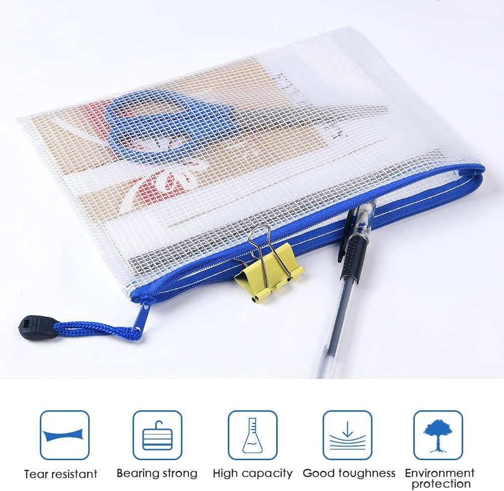 Vicloon Plastic Wallets A5, 10Pcs Zip Lock Bags Mesh Document Wallet Document Folders Plastic Pockets Zipper File Wallet for School Office Homework Storage Bags Travel