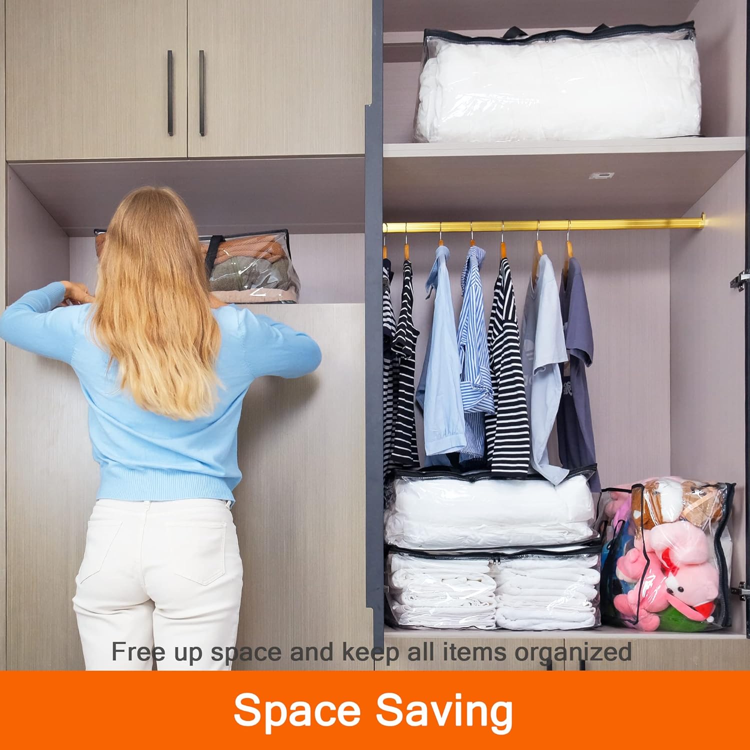 • Ideal for storing comforters, blankets, and toys.